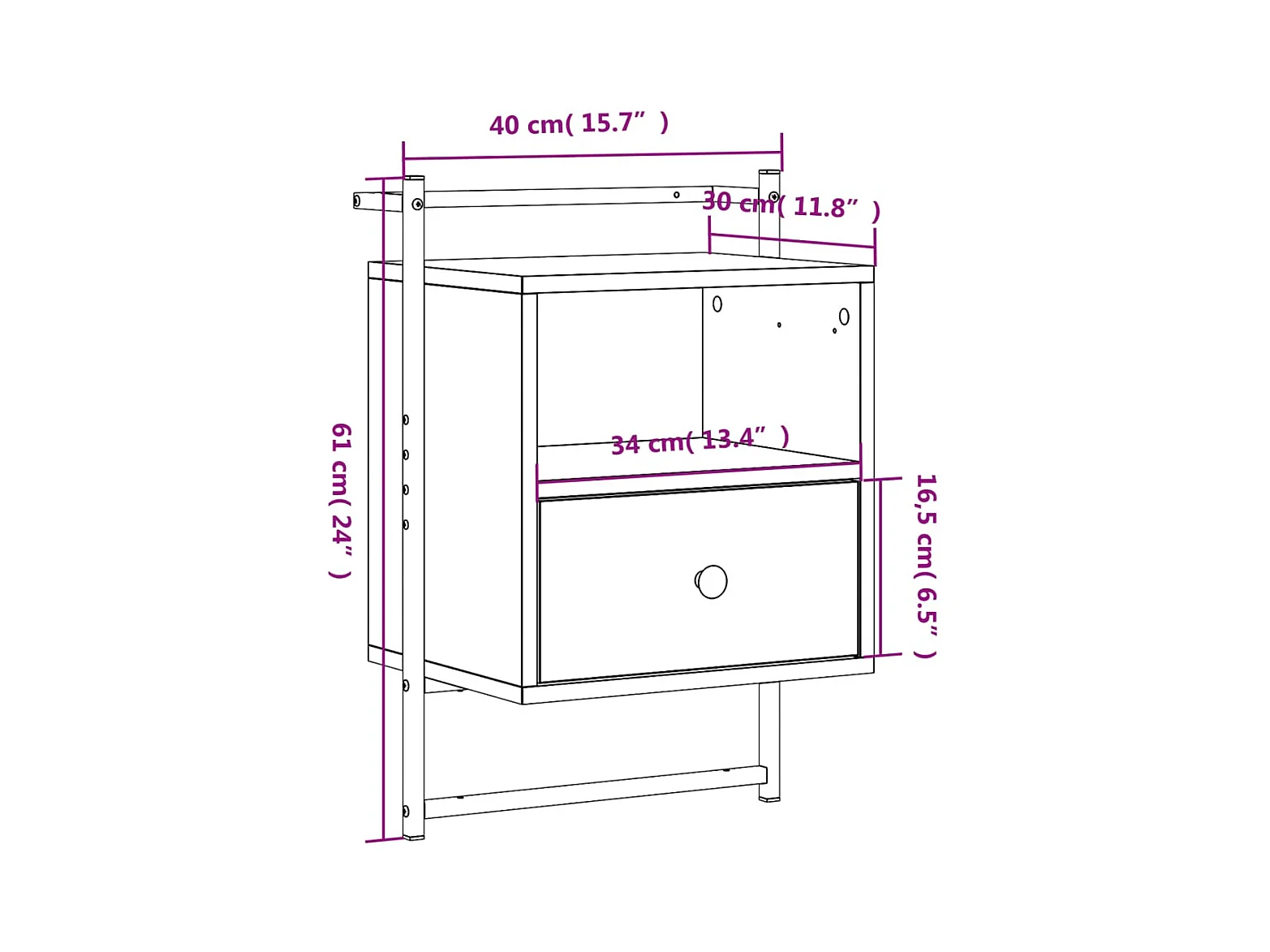 Mesa cabeceira parede 40x30x61cm deriv. madeira carvalho sonoma