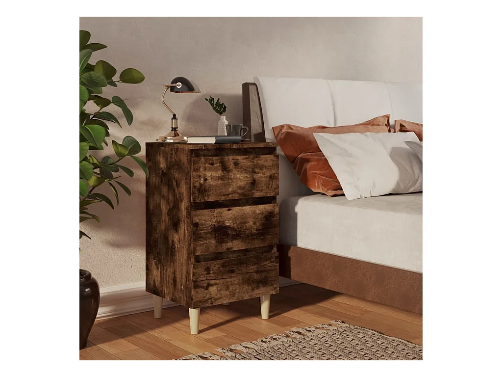 Mesa cabeceira pernas de madeira 40x35x69 cm carvalho fumado