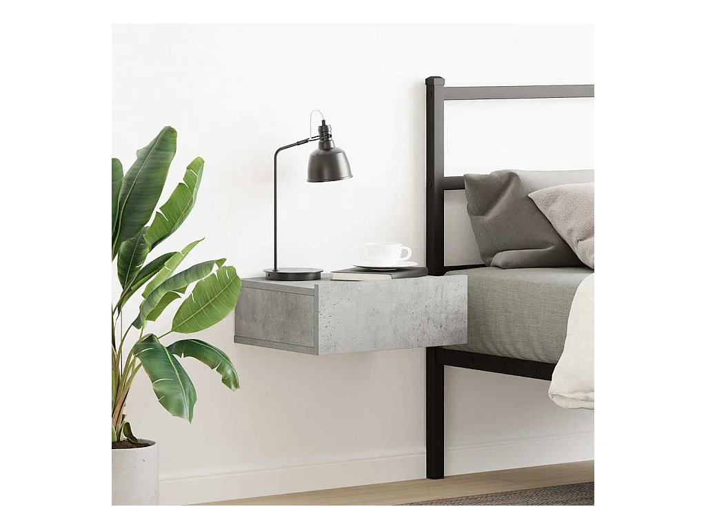 Mesa cabeceira suspensa derivados de madeira cinzento cimento