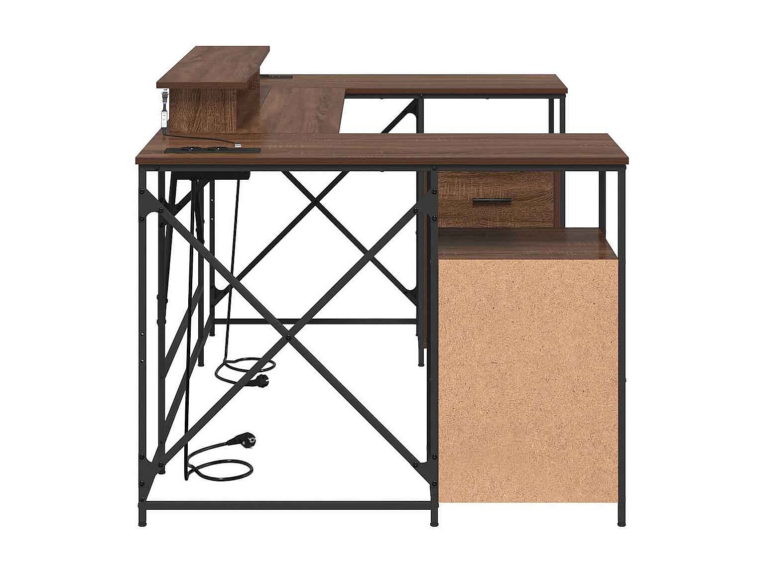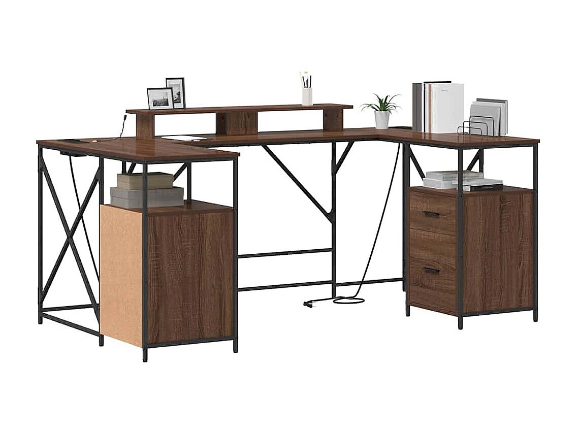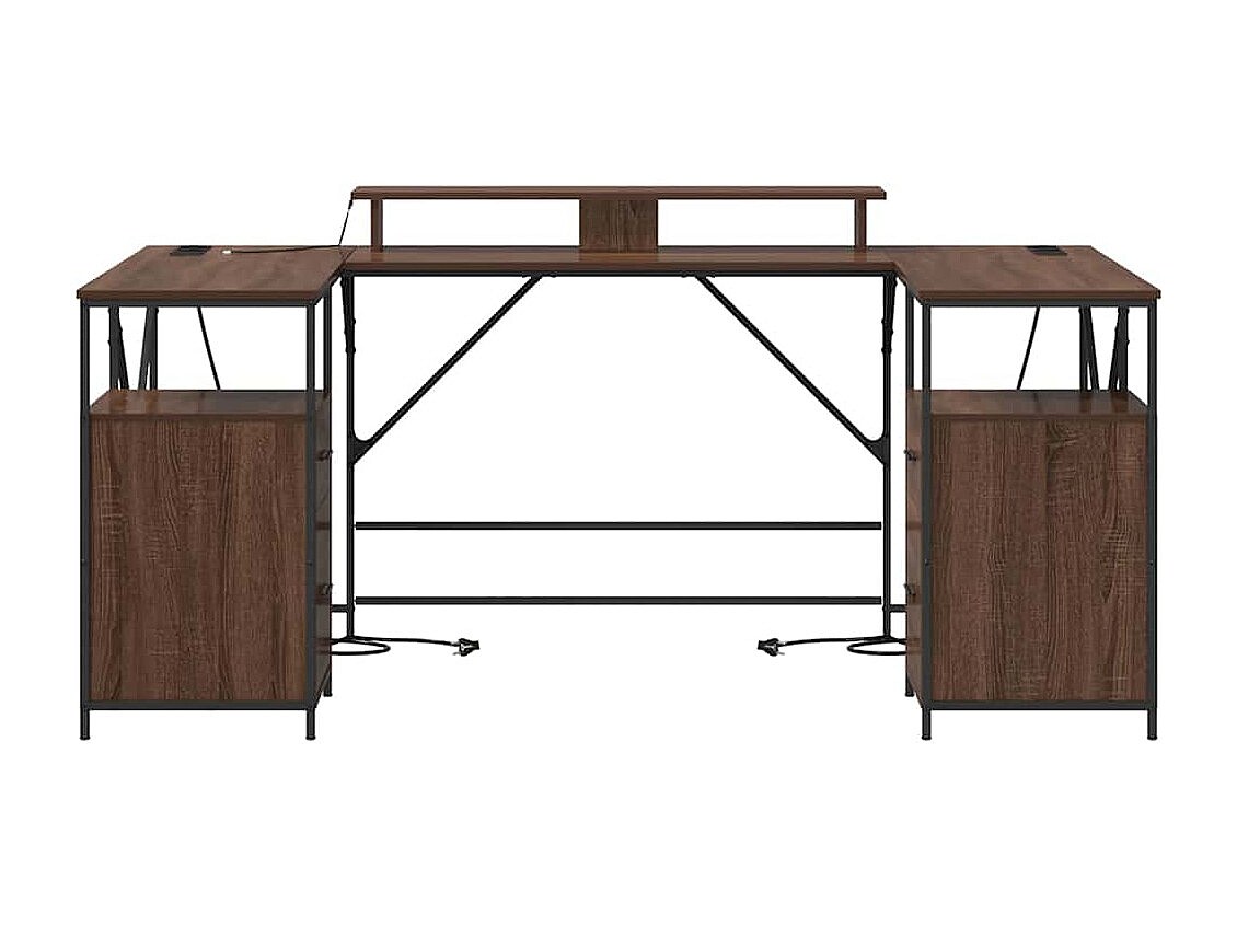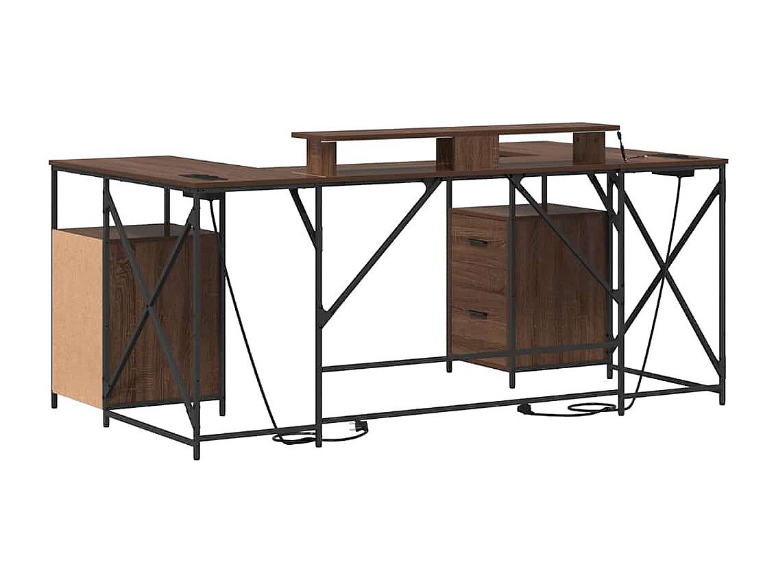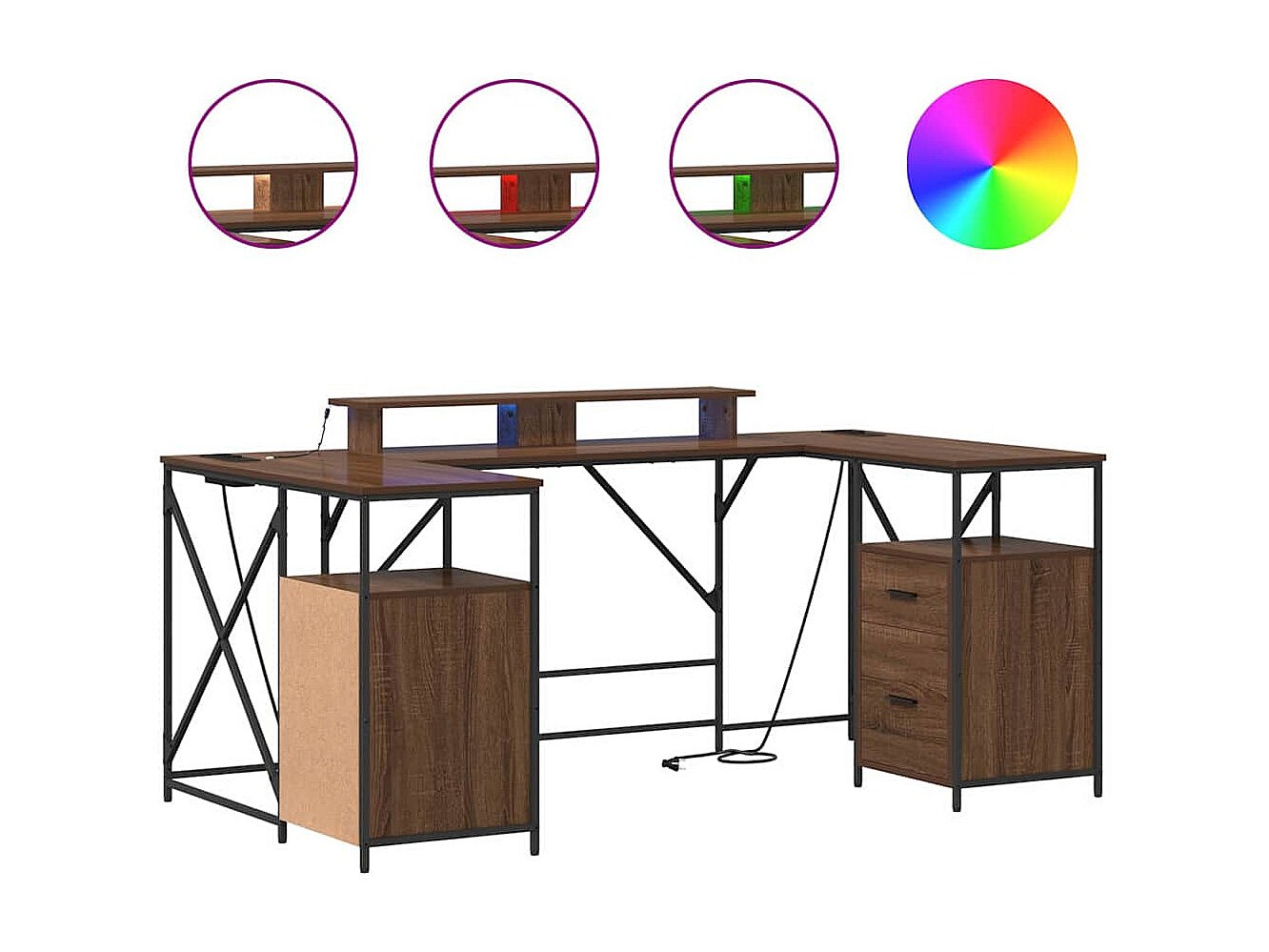 Secretária com luzes LED derivados de madeira carvalho castanho
