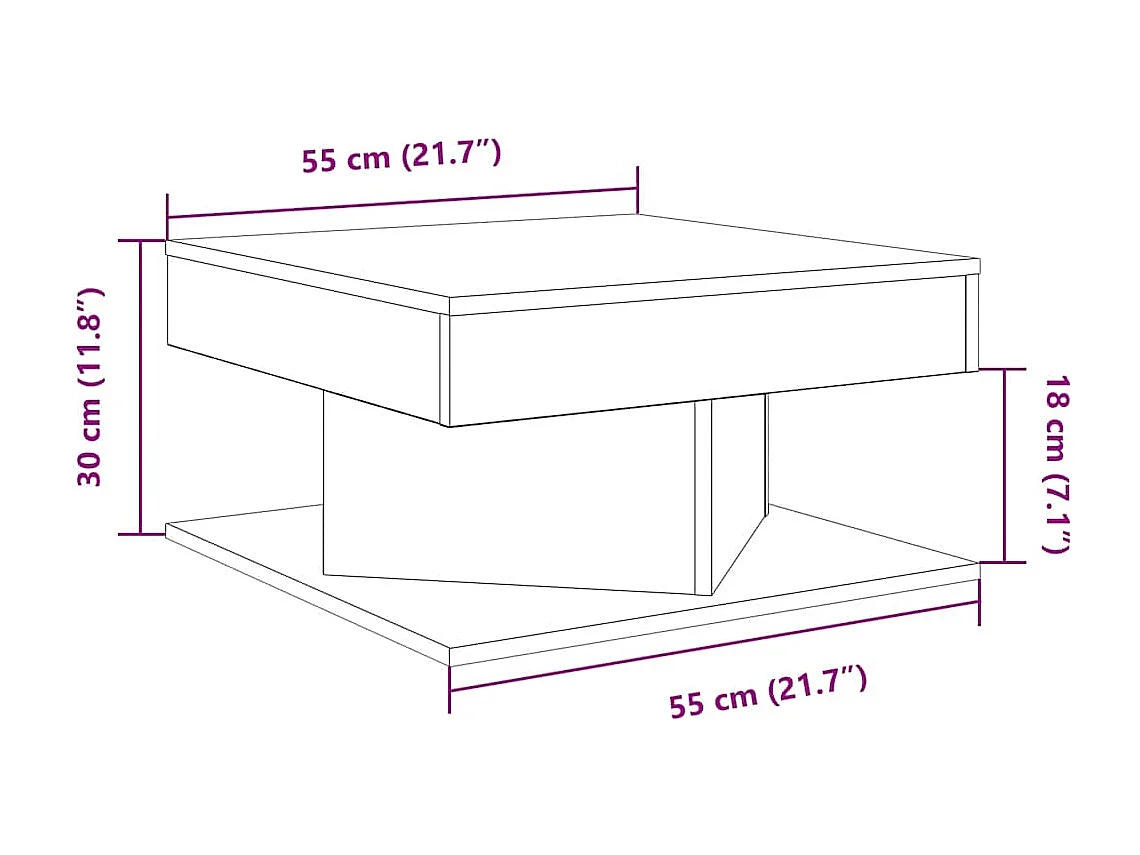 Mesa centro 55x55x30 cm derivados de madeira carvalho artisiano