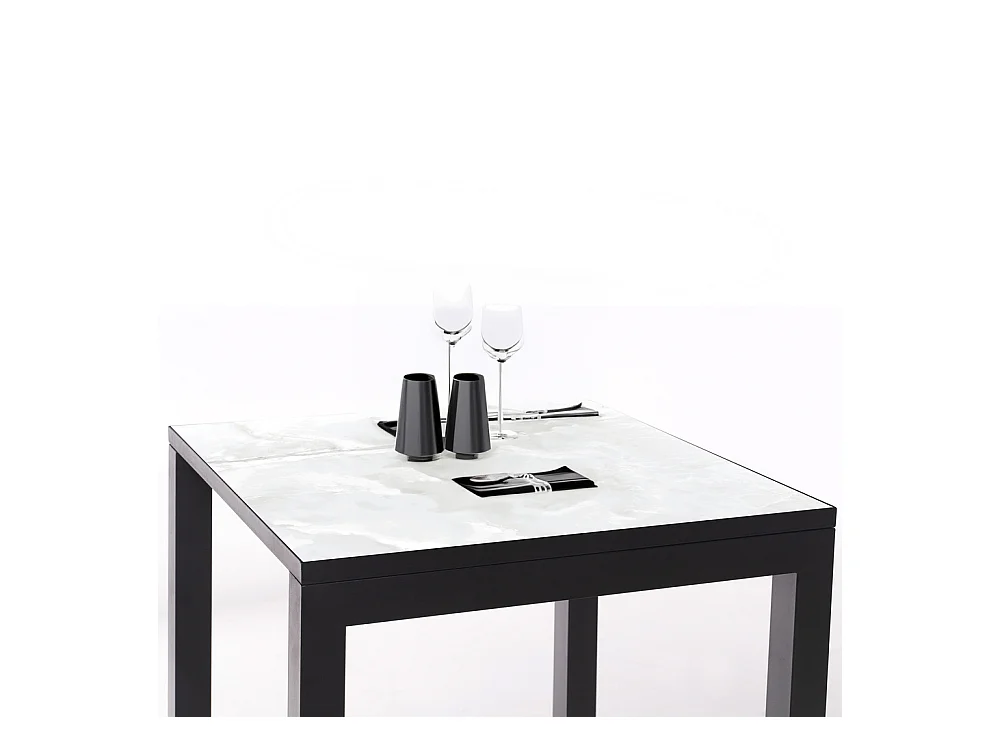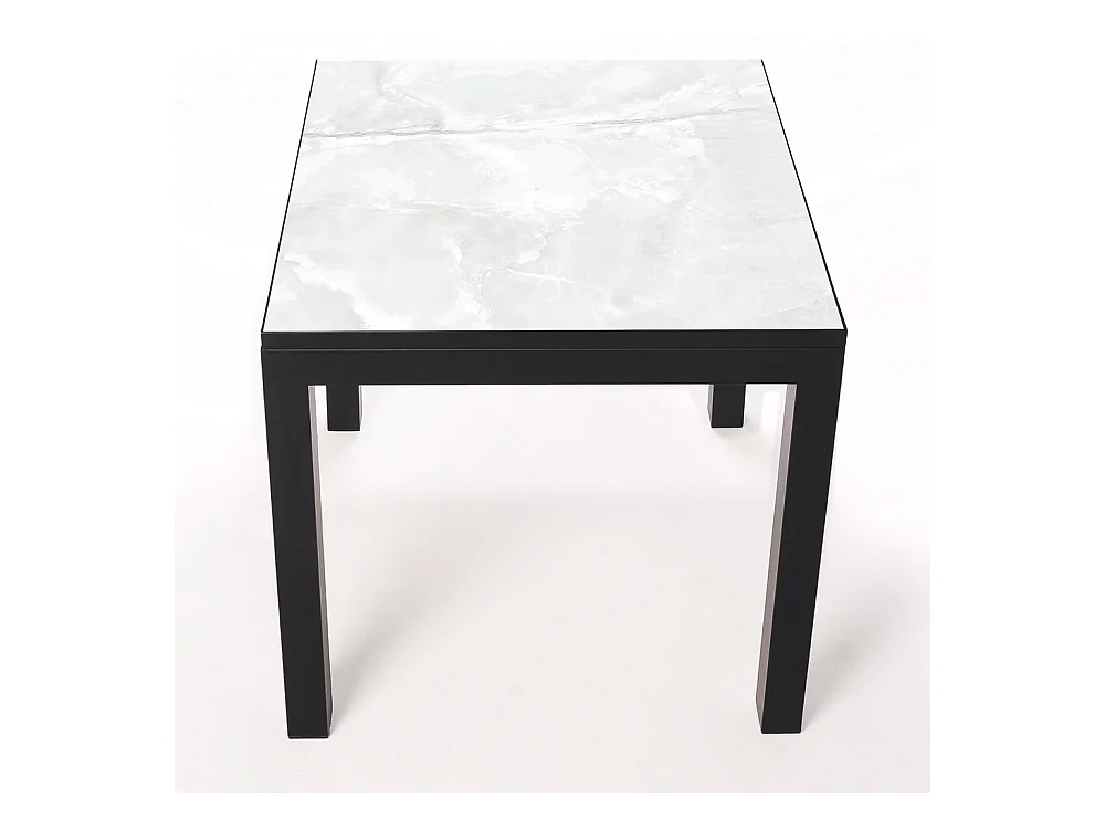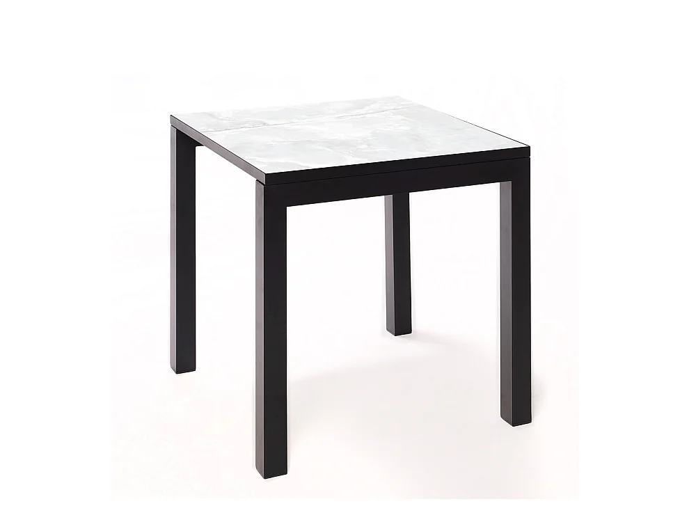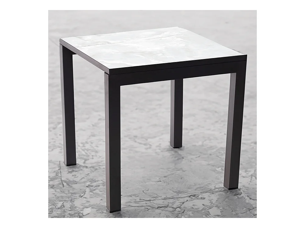 Mesa ceramica Luxury Calacata 75x75x75cm Preta, apropriada para interior e exterior, superficie porcelanica e estrutura em aço SmarTile