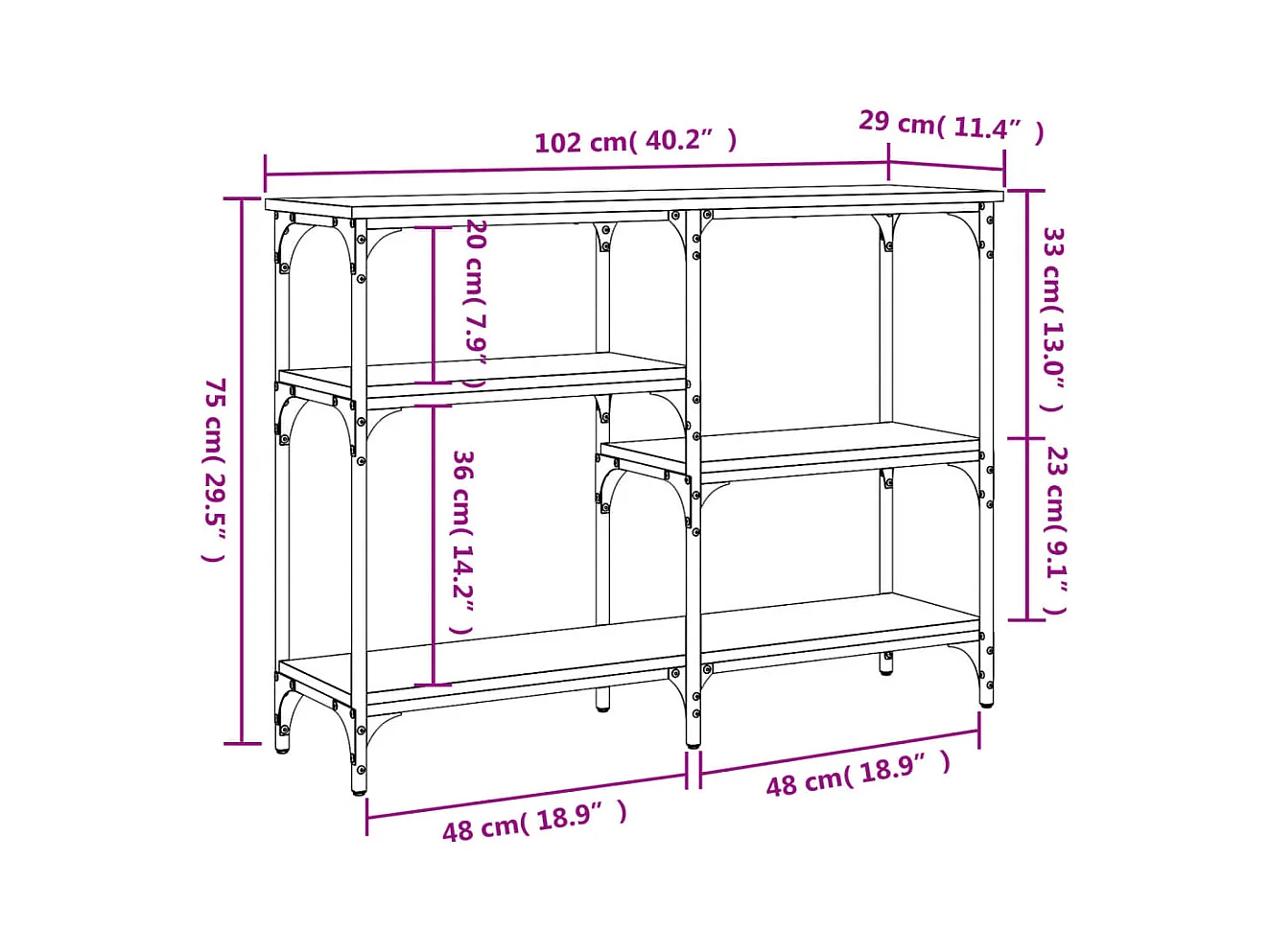 Mesa consola 102x29x75 cm derivados de madeira carvalho fumado PT351698