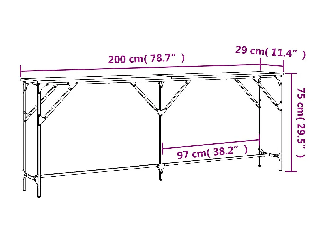 Mesa consola 200x29x75 cm derivados de madeira carvalho fumado