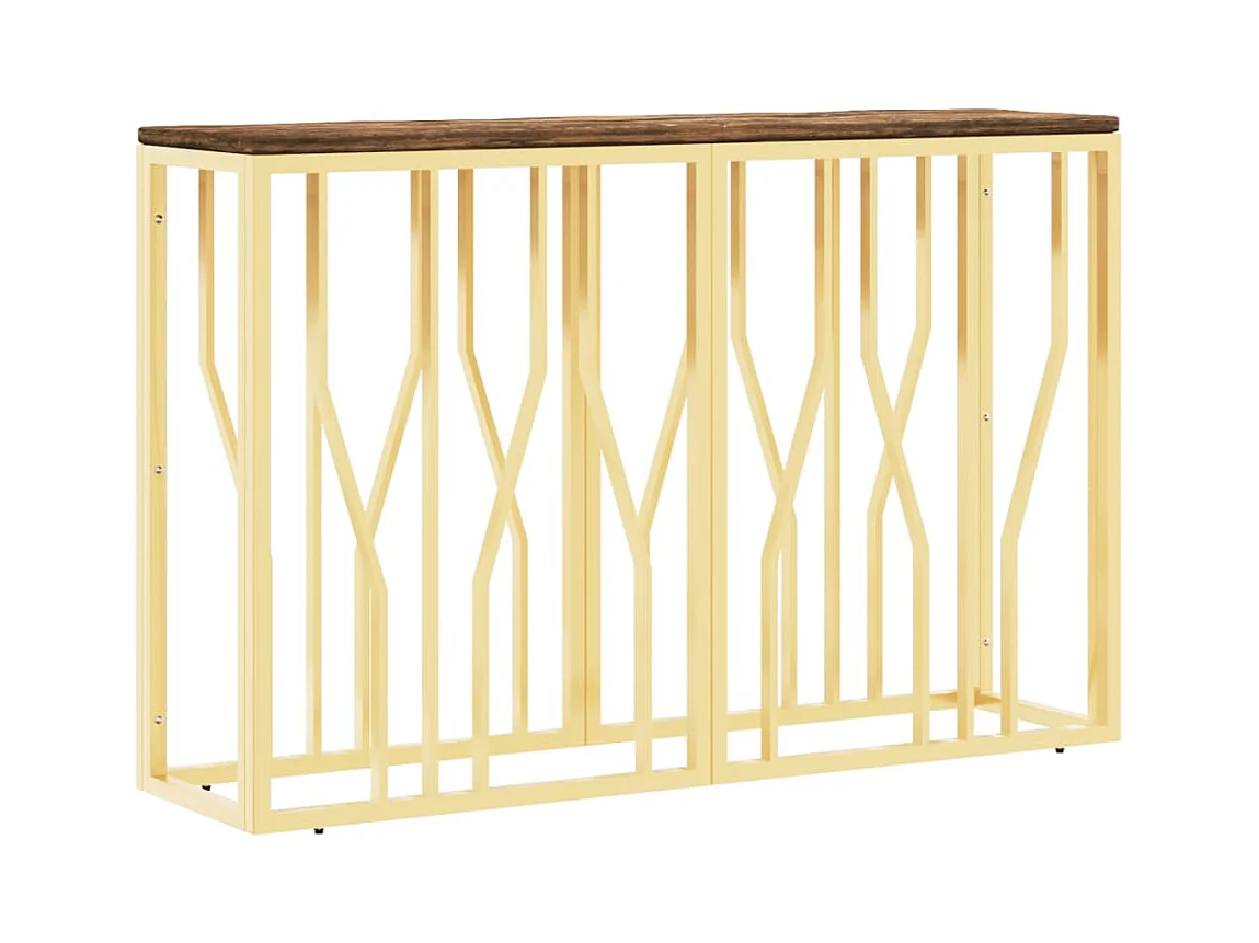 Mesa consola aço inoxidável/madeira recuperada maciça dourado