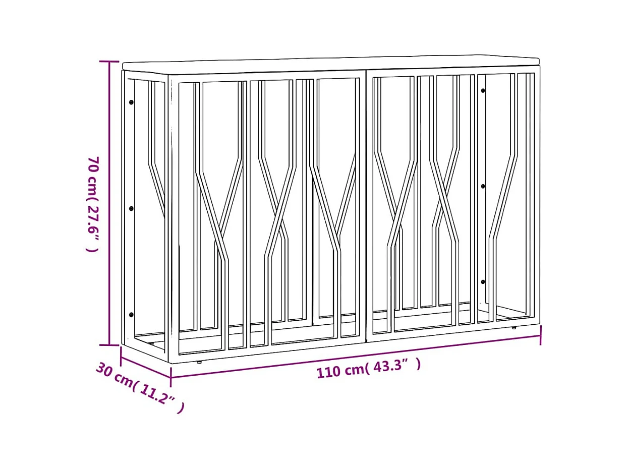 Mesa consola 110x30x70 cm aço inoxidável e vidro
