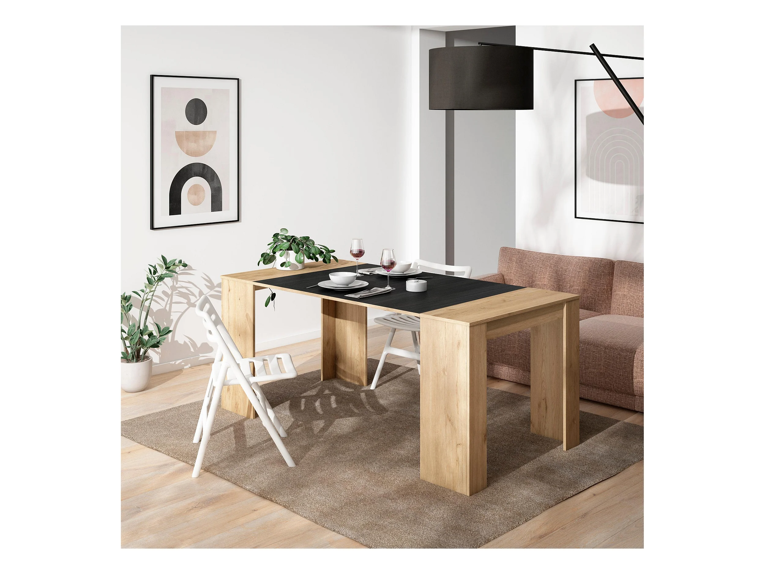 Mesa Consola Extensível, 160x90x73cm, Para 8 pessoas, Pés de madeira, Carvahlo e preto