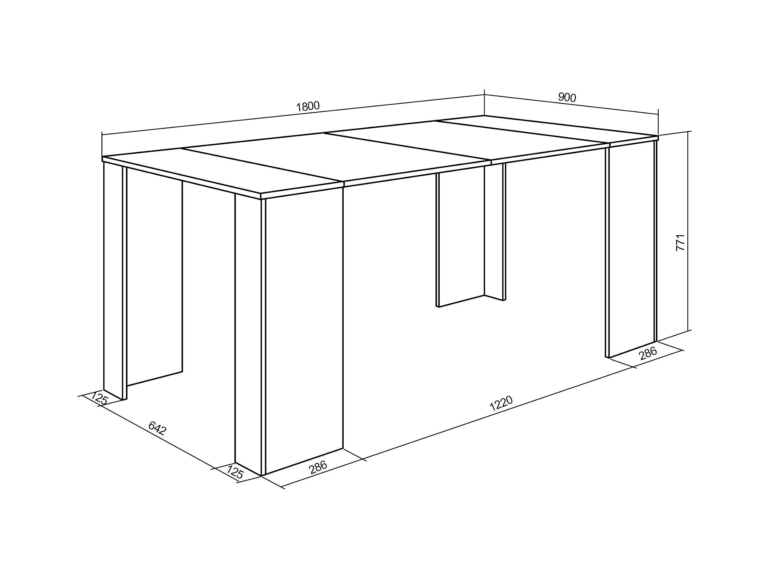 Mesa Consola Extensível, 180x90x73cm, Para 8 pessoas, Pés de madeira, Preto