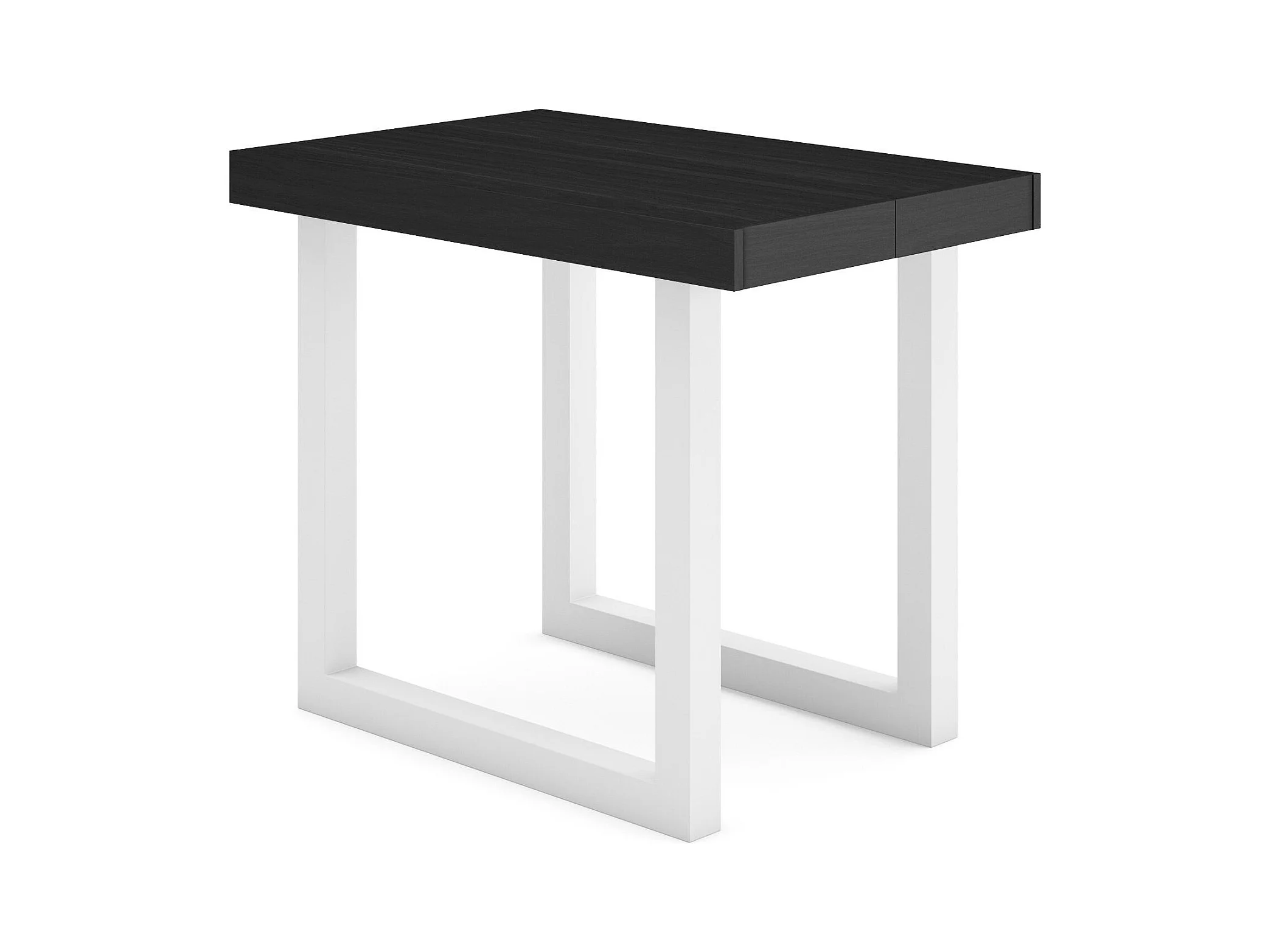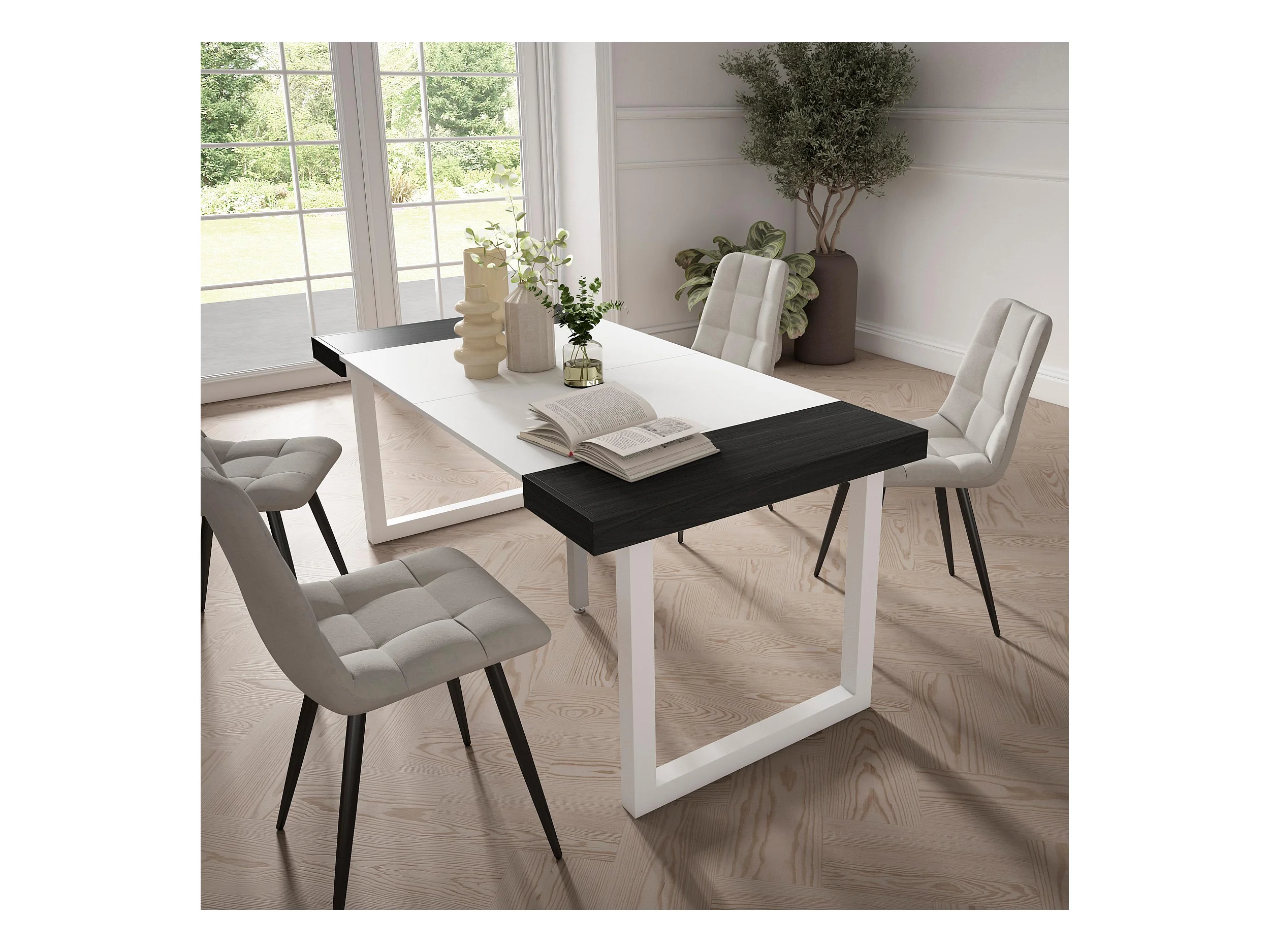 Mesa Consola Extensível, 180x90x73cm, Para 8 pessoas, Pés de madeira, Branco e preto