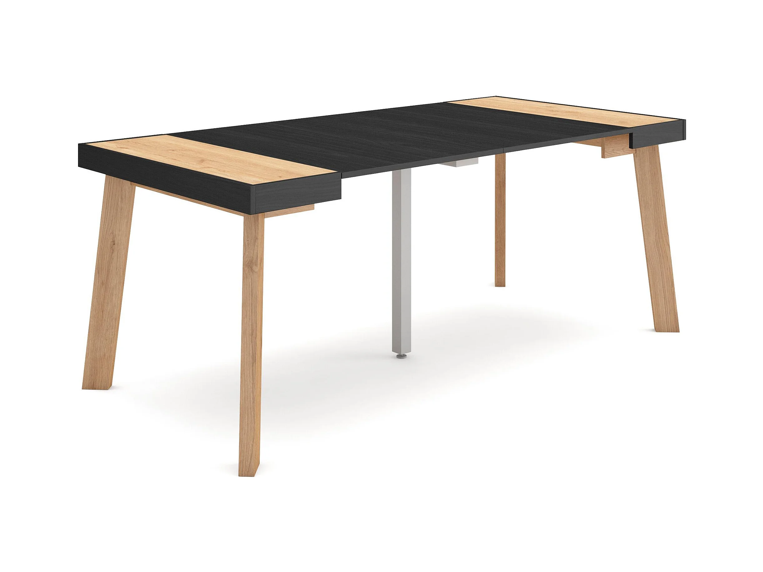 Mesa Consola Extensível, 160x90x73cm, Para 8 pessoas, Pés de madeira, Carvahlo e preto