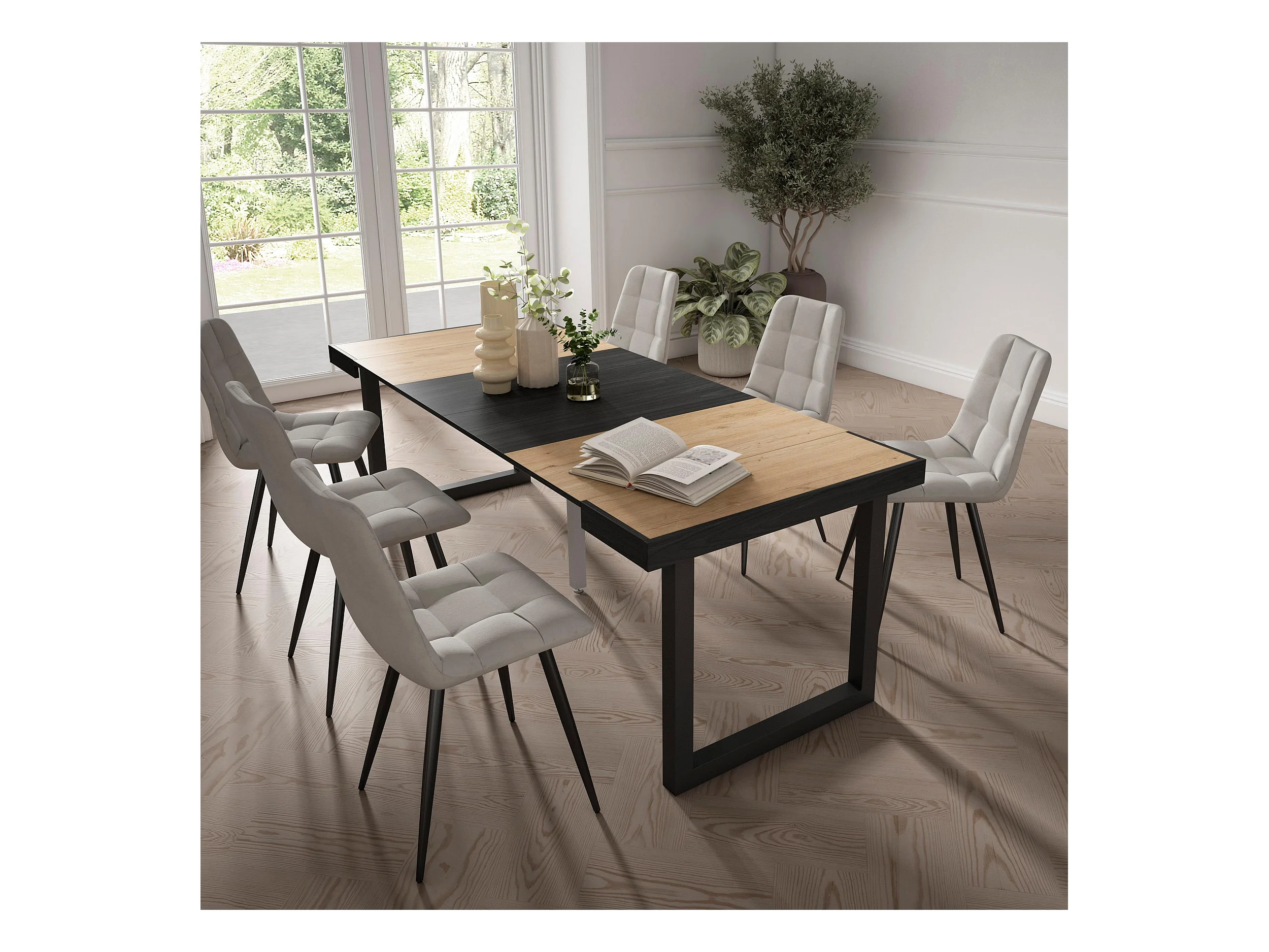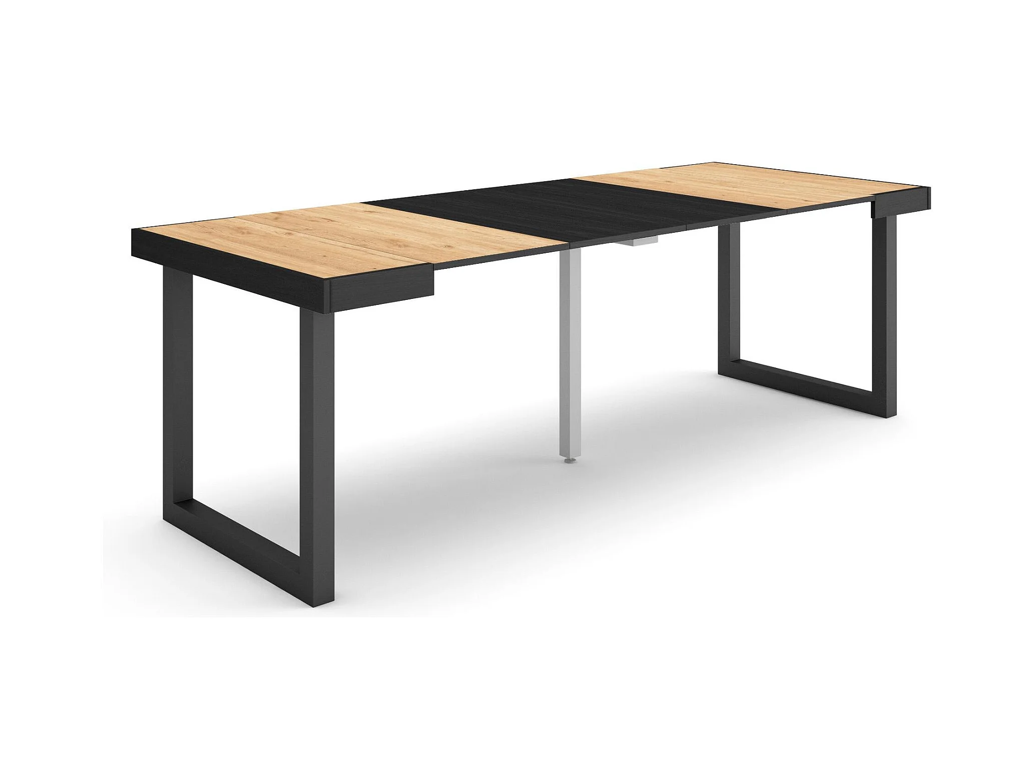Mesa Consola Extensível, 180x90x73cm, Para 8 pessoas, Pés de madeira, Carvahlo e preto
