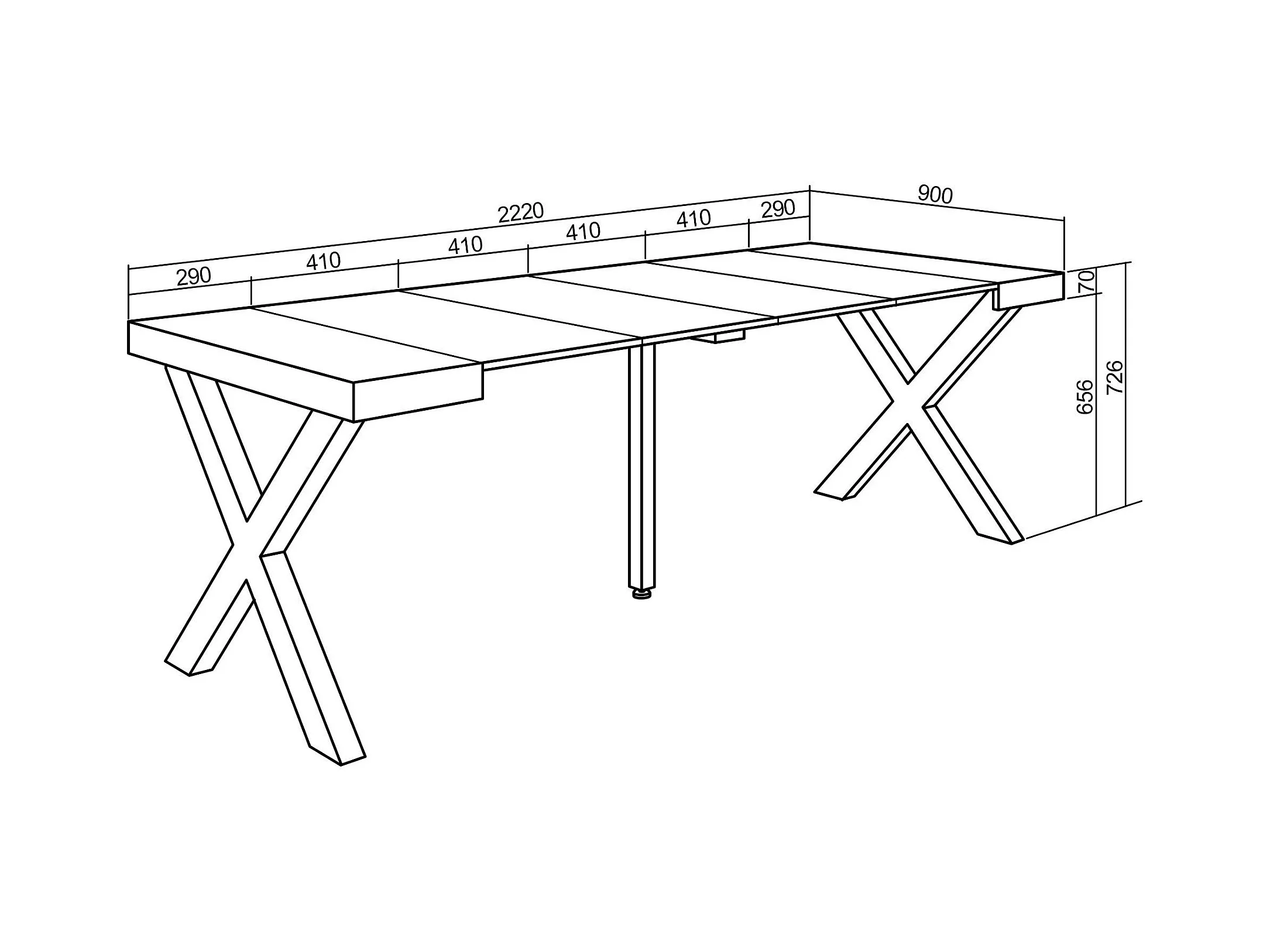 Mesa Consola Extensível, 222x90x73cm, Para 10 pessoas, Pés de madeira, Carvahlo