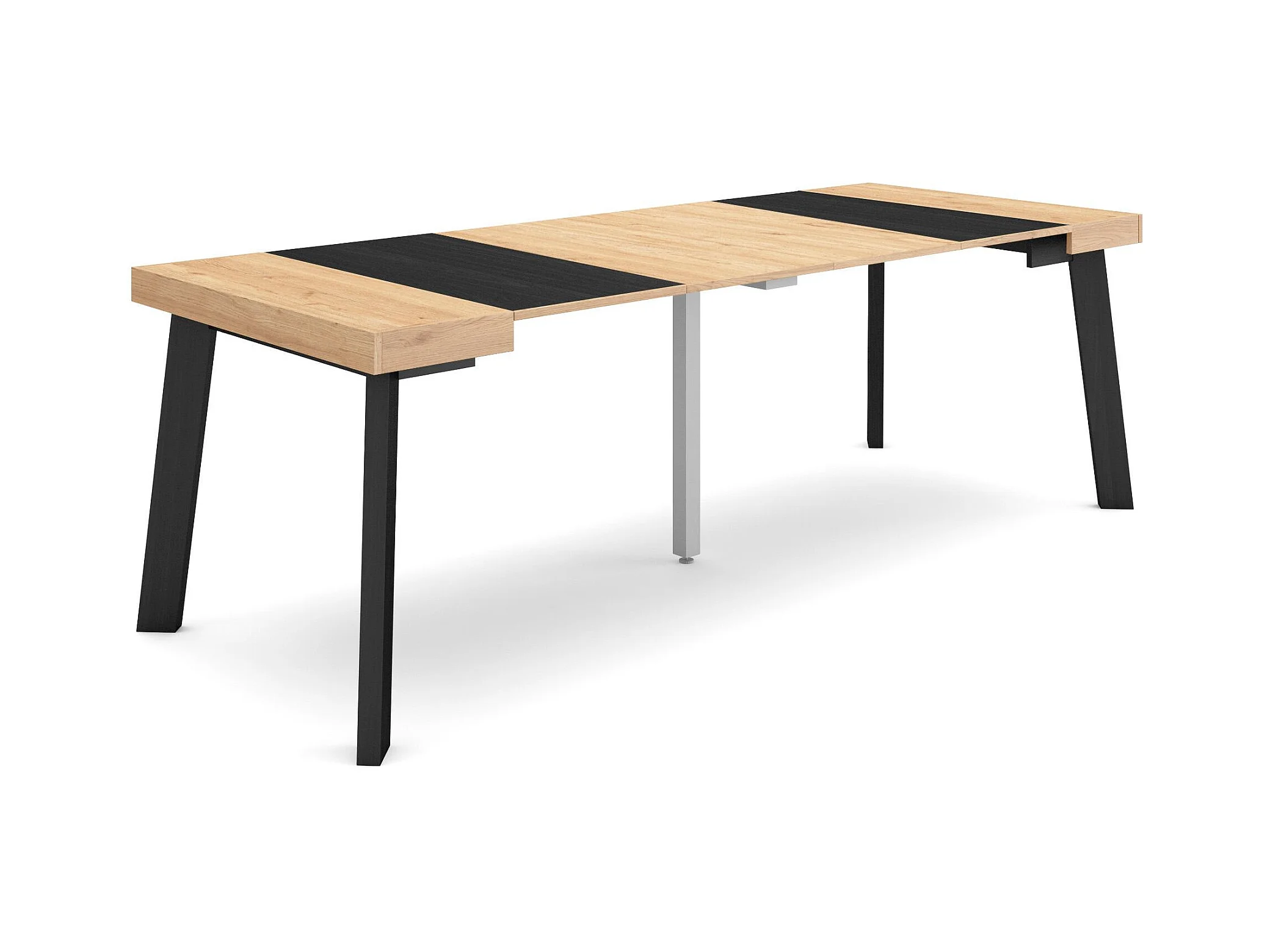 Mesa Consola Extensível, 262x90x73cm, Para 12 pessoas, Pés de madeira, Carvahlo e preto