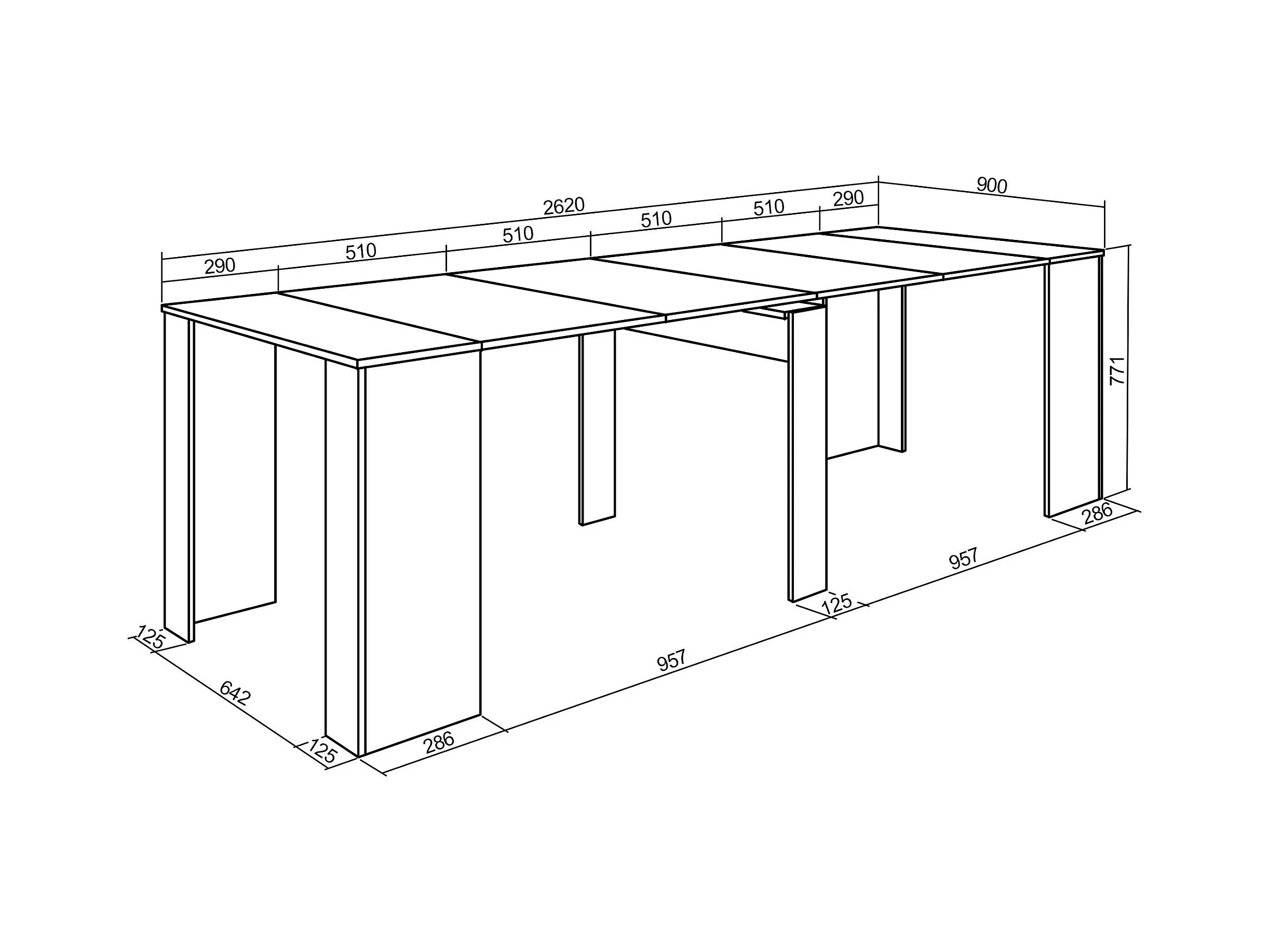 Mesa Consola Extensível, 262x90x77cm, Para 12 pessoas, Mesa de Jantar, Cimento