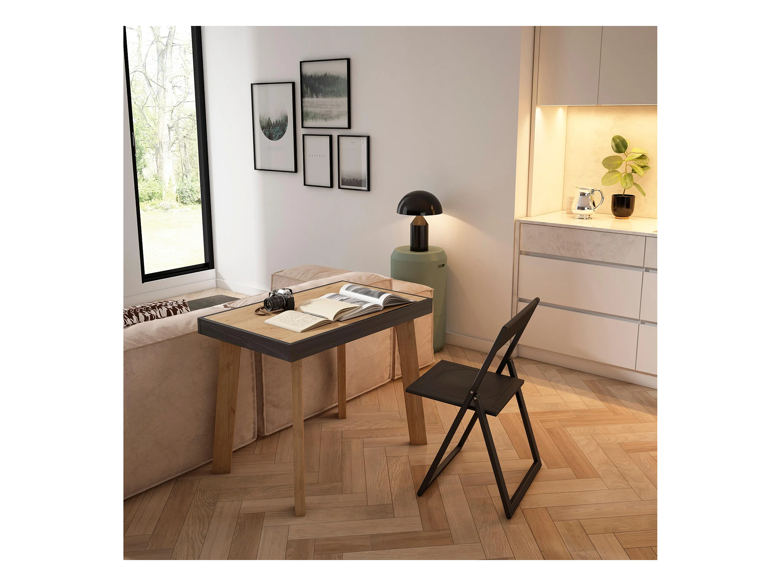 Mesa Consola Extensível, 180x90x73cm, Para 8 pessoas, Pés de madeira, Carvahlo e preto