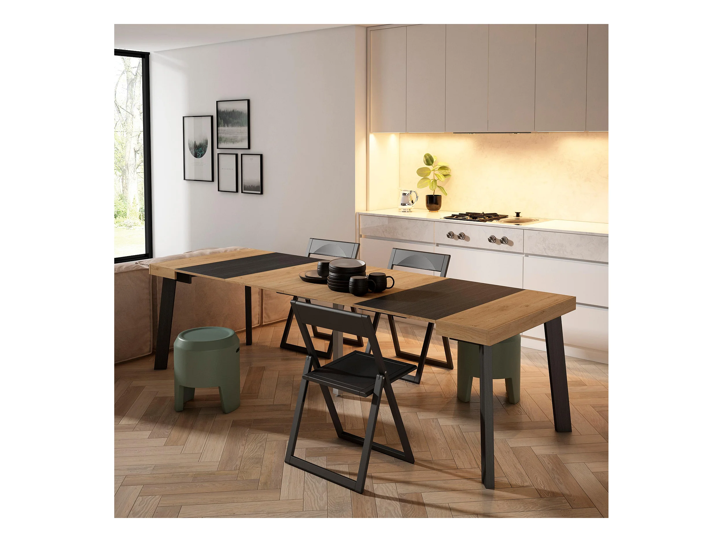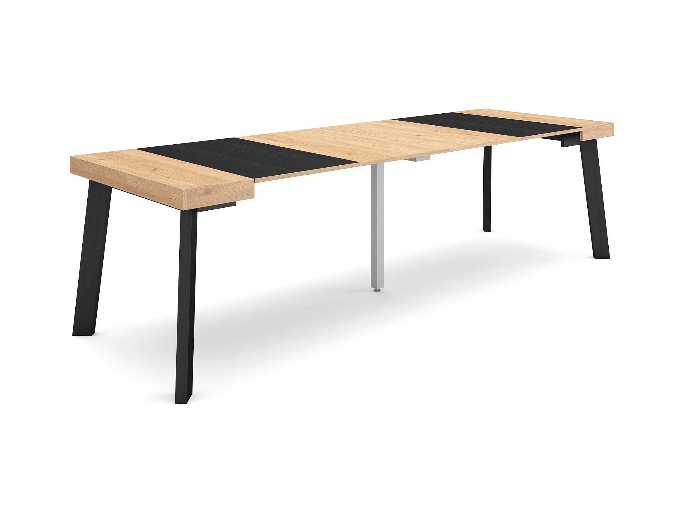 Mesa Consola Extensível, 262x90x73cm, Para 12 pessoas, Pés de madeira, Carvahlo e preto