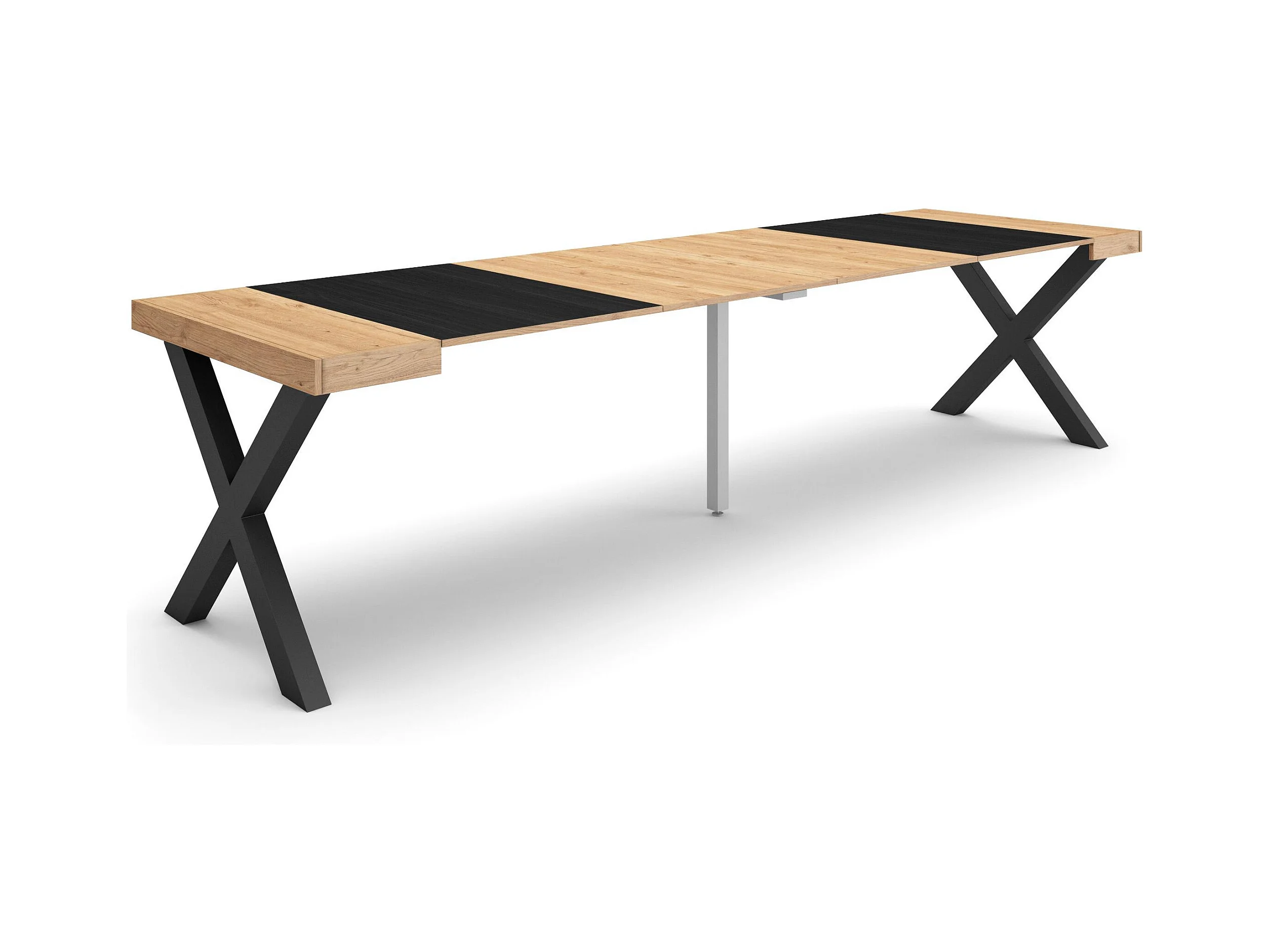 Mesa Consola Extensível, 302x90x73cm, Para 14 pessoas, Pés de madeira, Carvahlo e preto