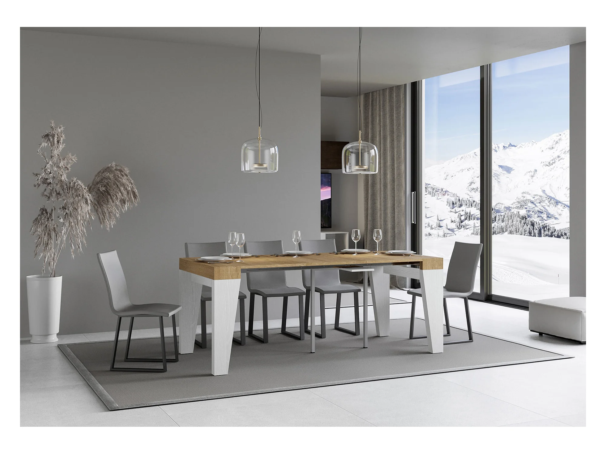Mesa consola extensível 90x40/196 cm Spimbo Mix Small plano Cinza Branca - estrutura Carvalho Natural