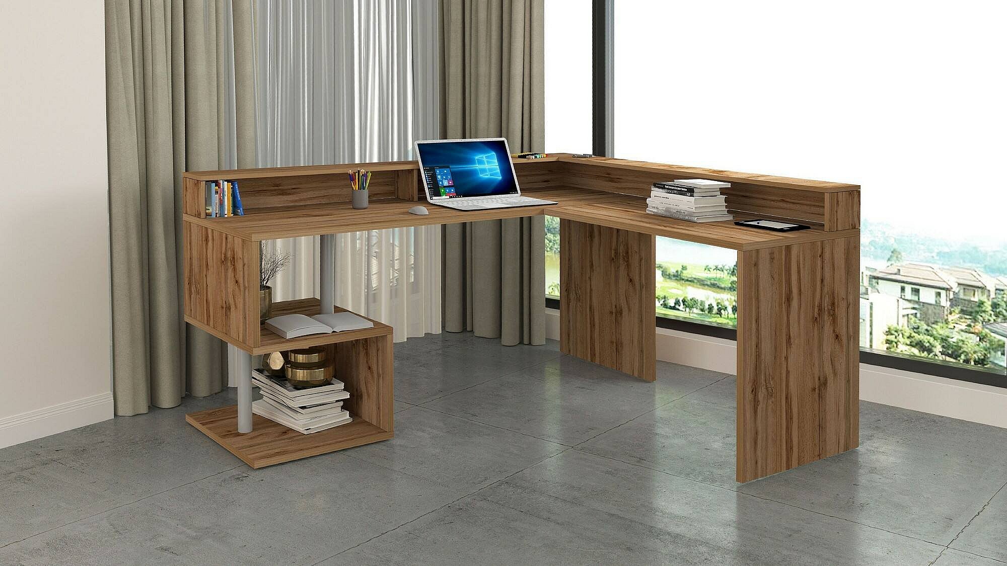 Mesa Dcheryshe, Mesa de trabalho linear com prateleiras de armazenamento, Mesa de escritório multiusos com salto, 140x60h93 cm, Carvalho