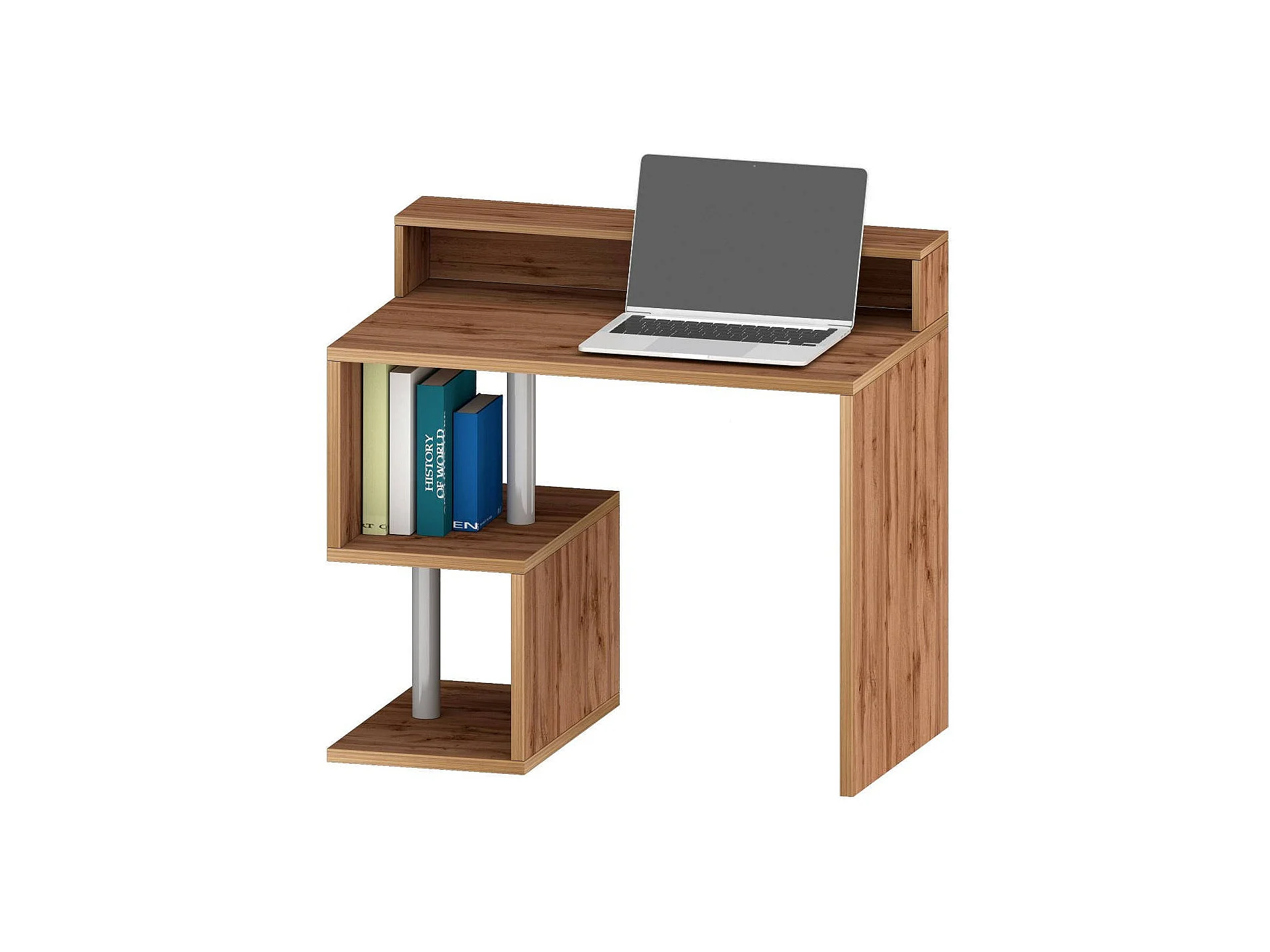 Mesa Dchichizol, Mesa de trabalho linear com prateleiras de armazenamento, Mesa de escritório multiusos com soco, 100x50h93 cm, Carvalho