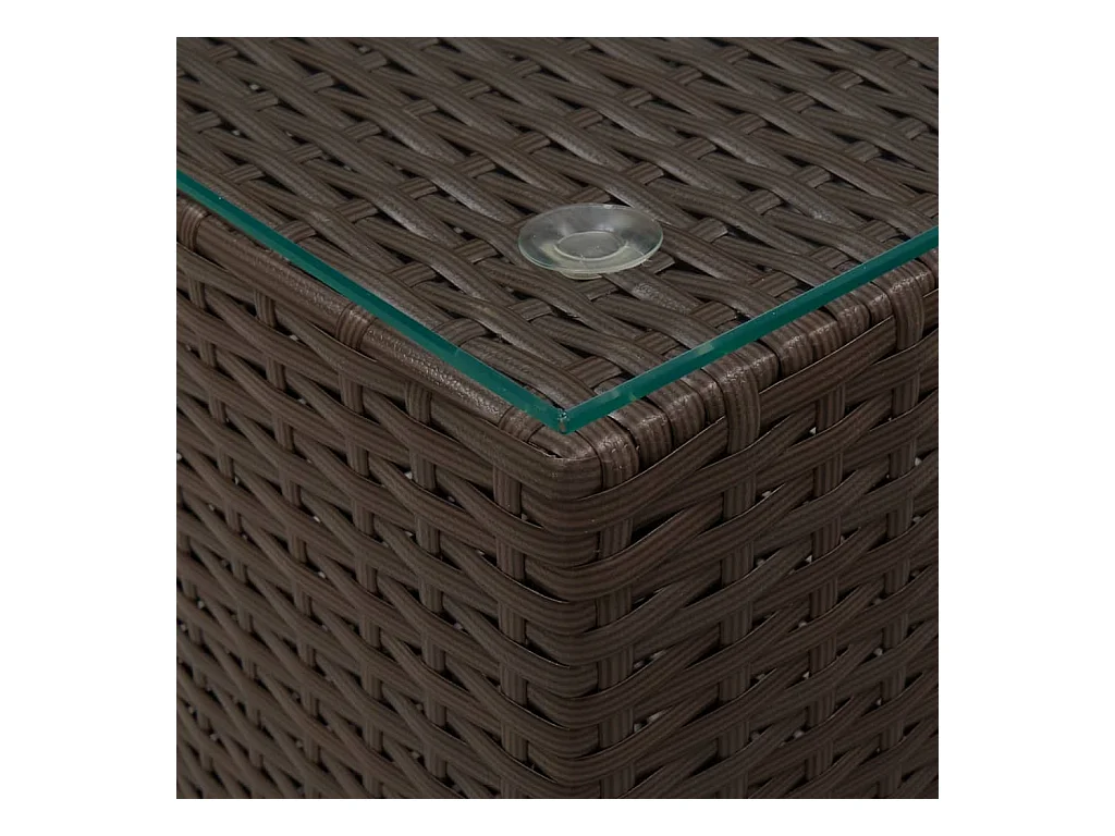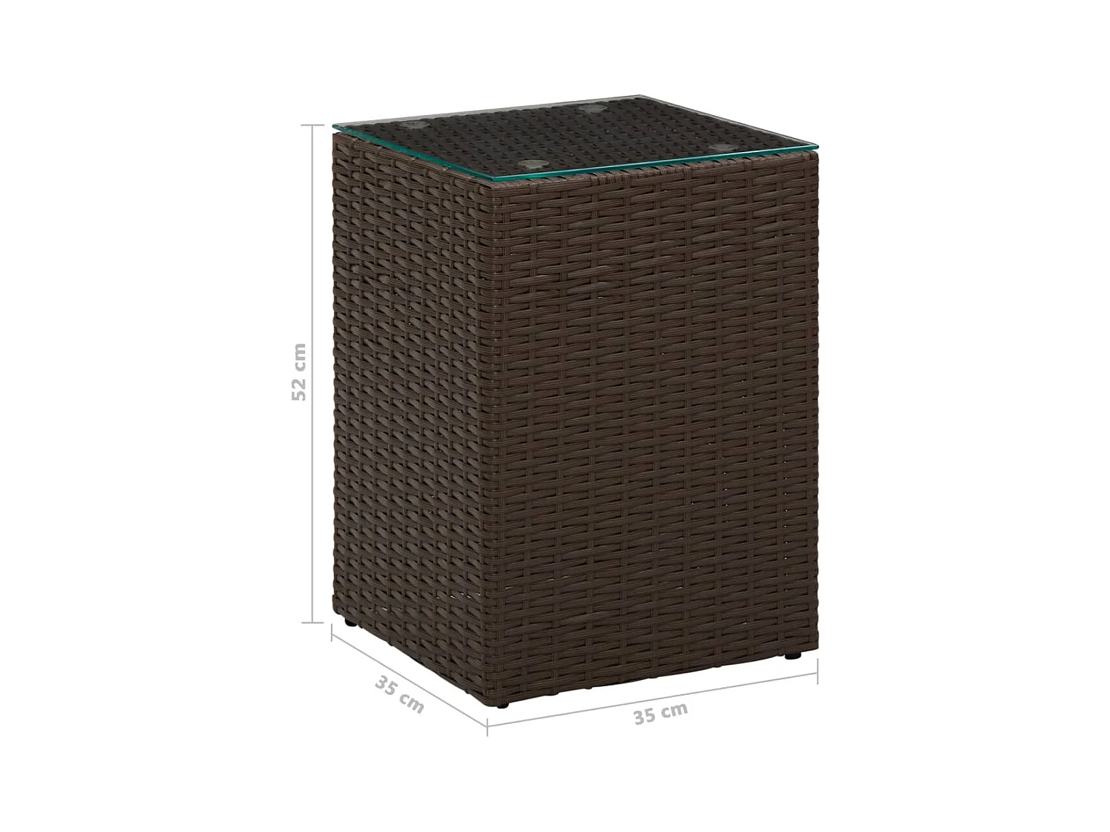 Mesa de apoio com tampo de vidro 35x35x52 cm vime PE castanho
