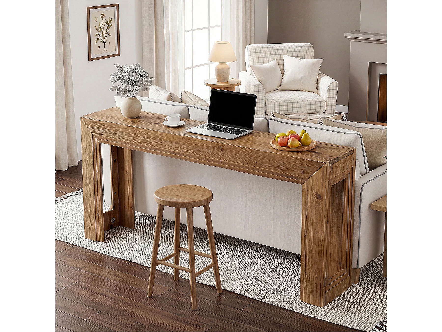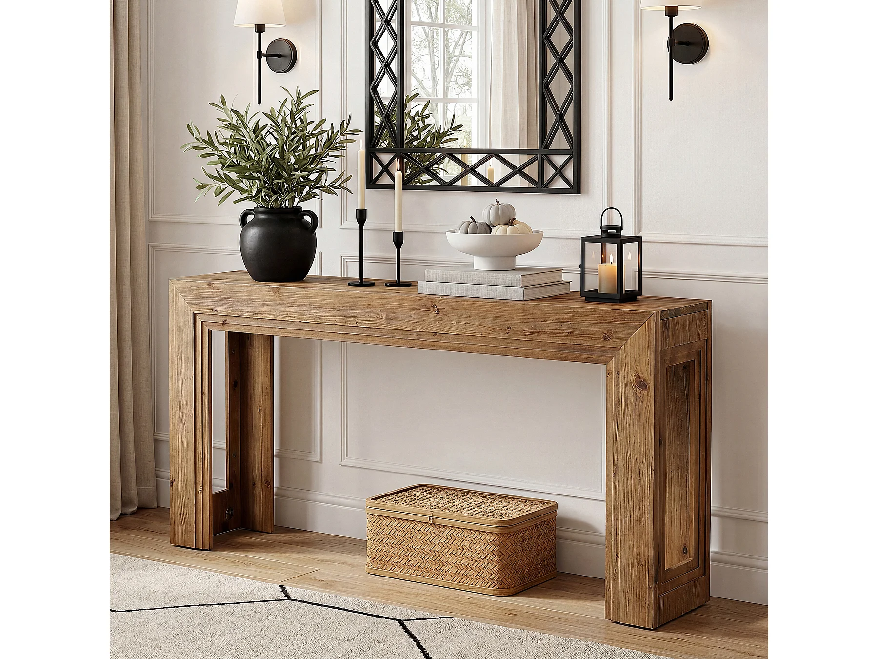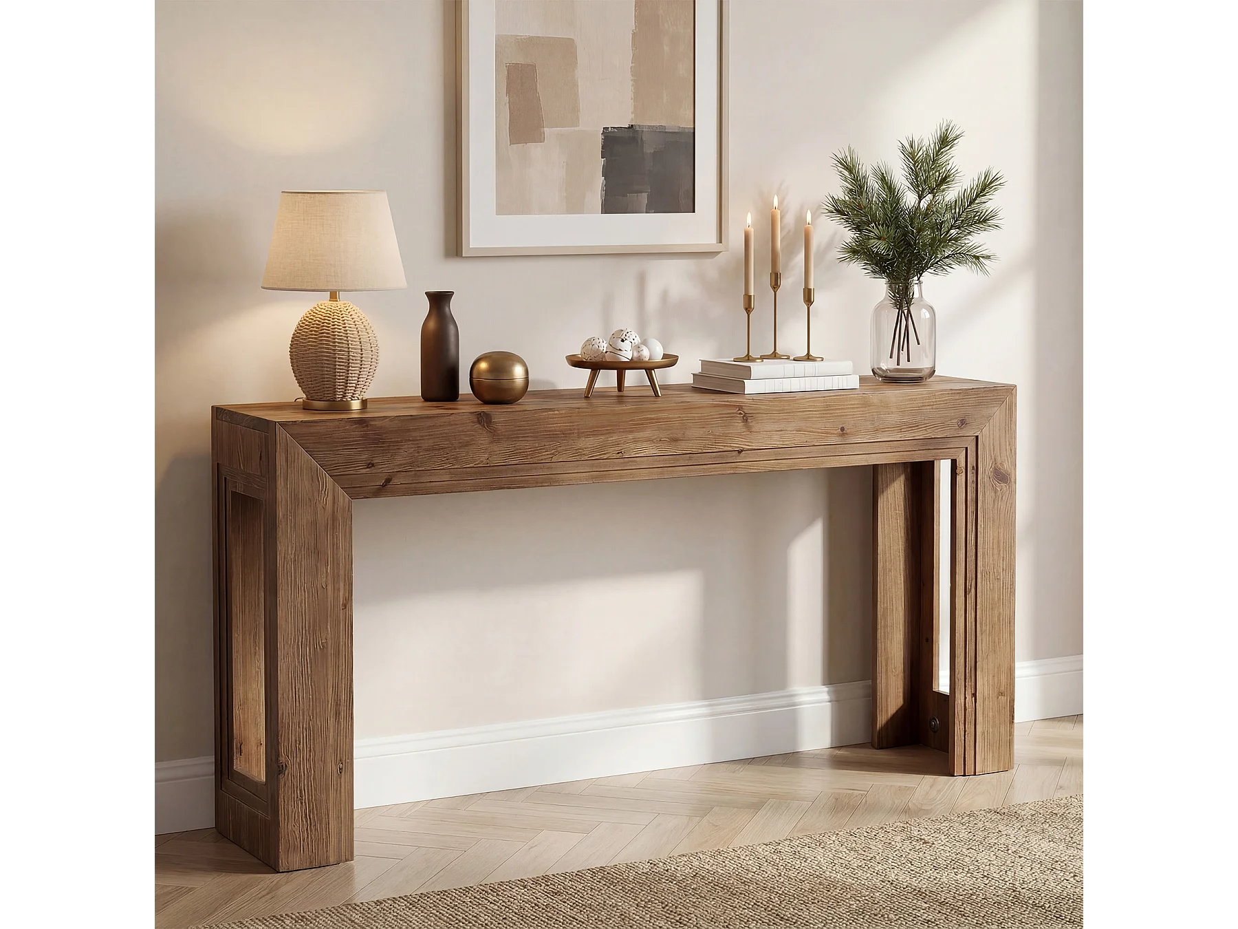 Mesa de Apoio de Madeira Sólida de 160 cm, Mesa de Entrada Estreita para Entrada