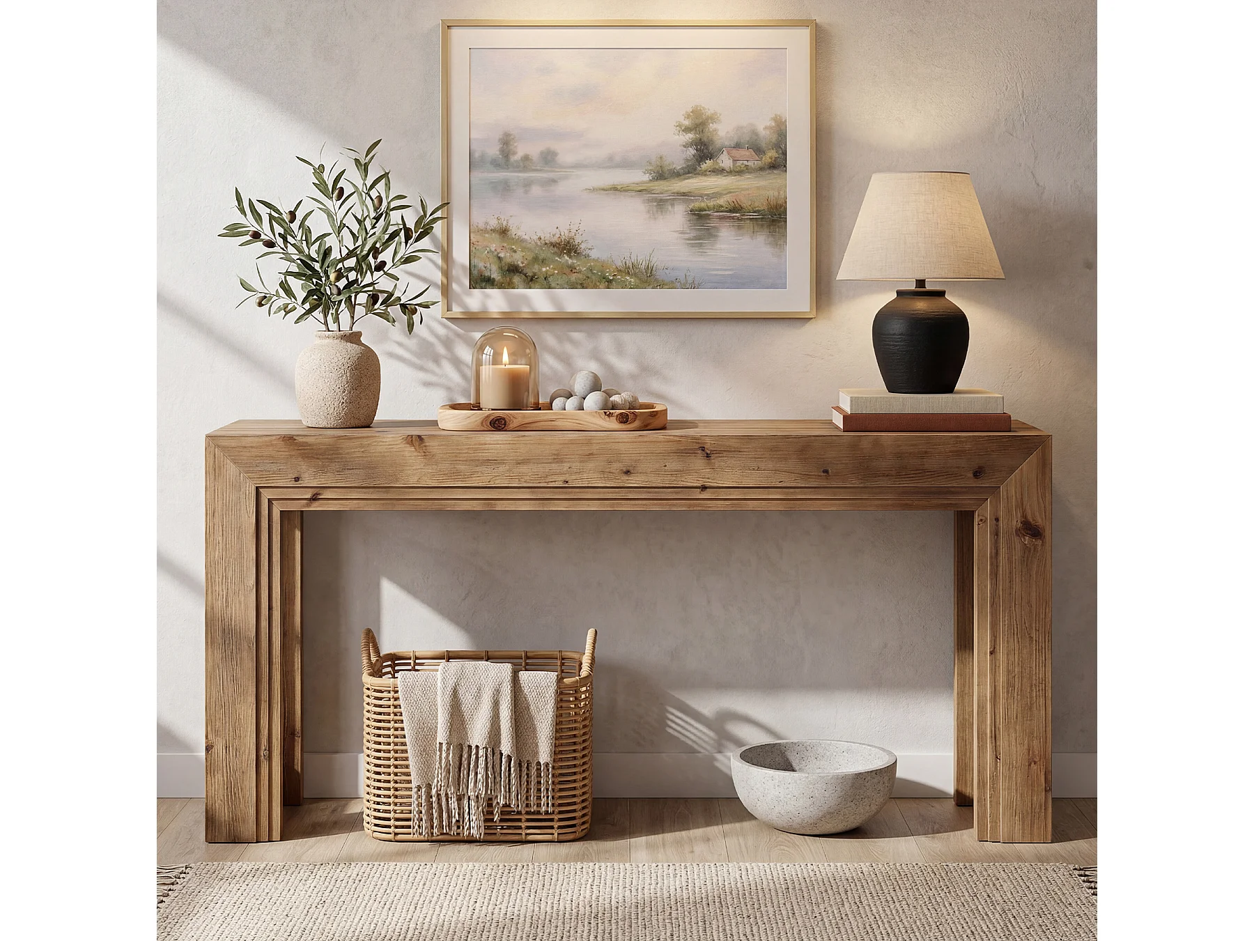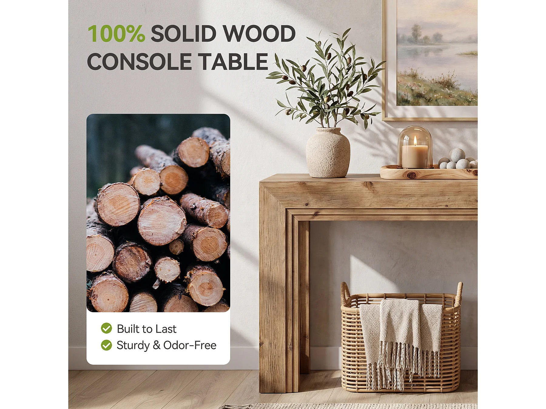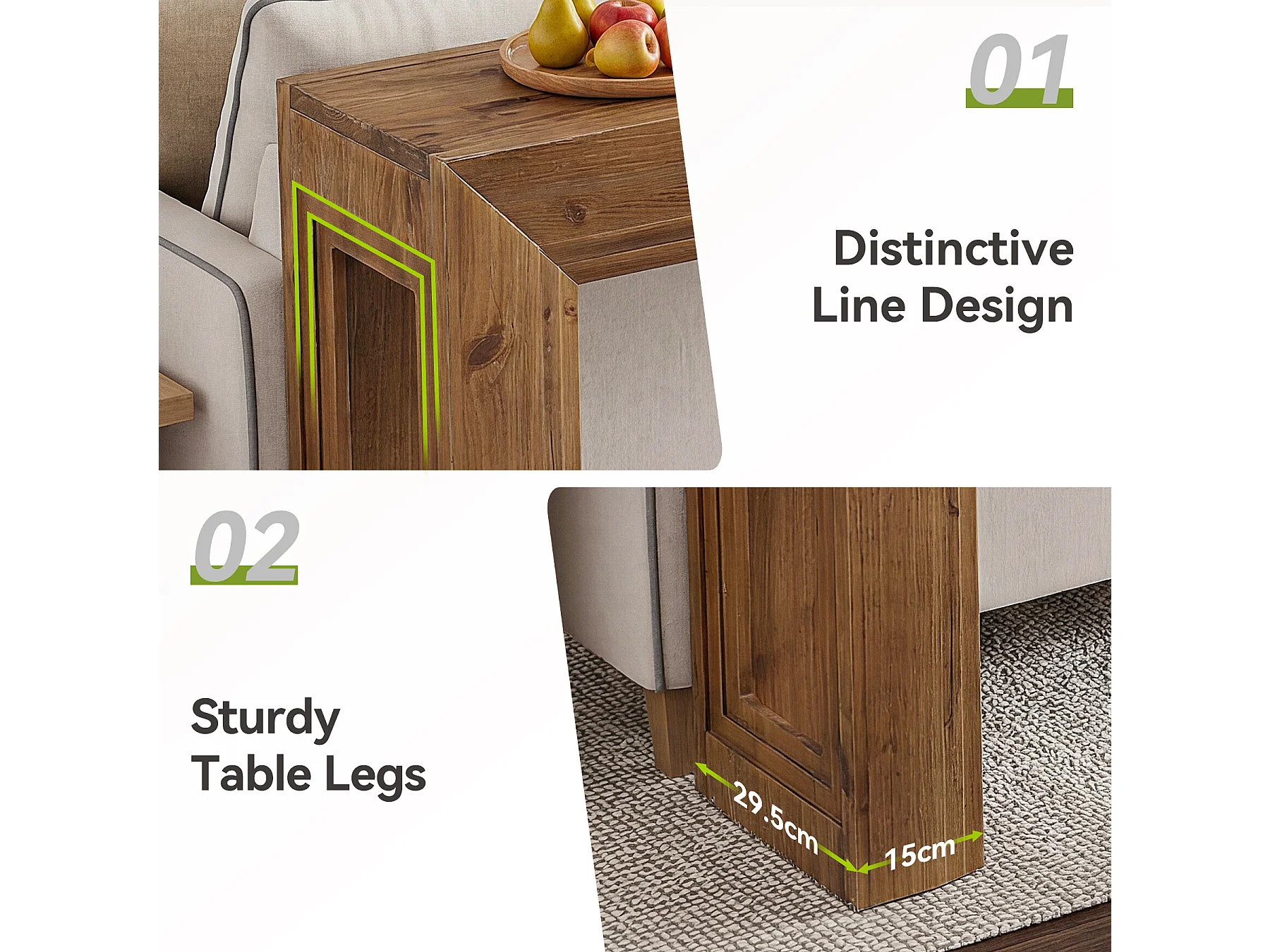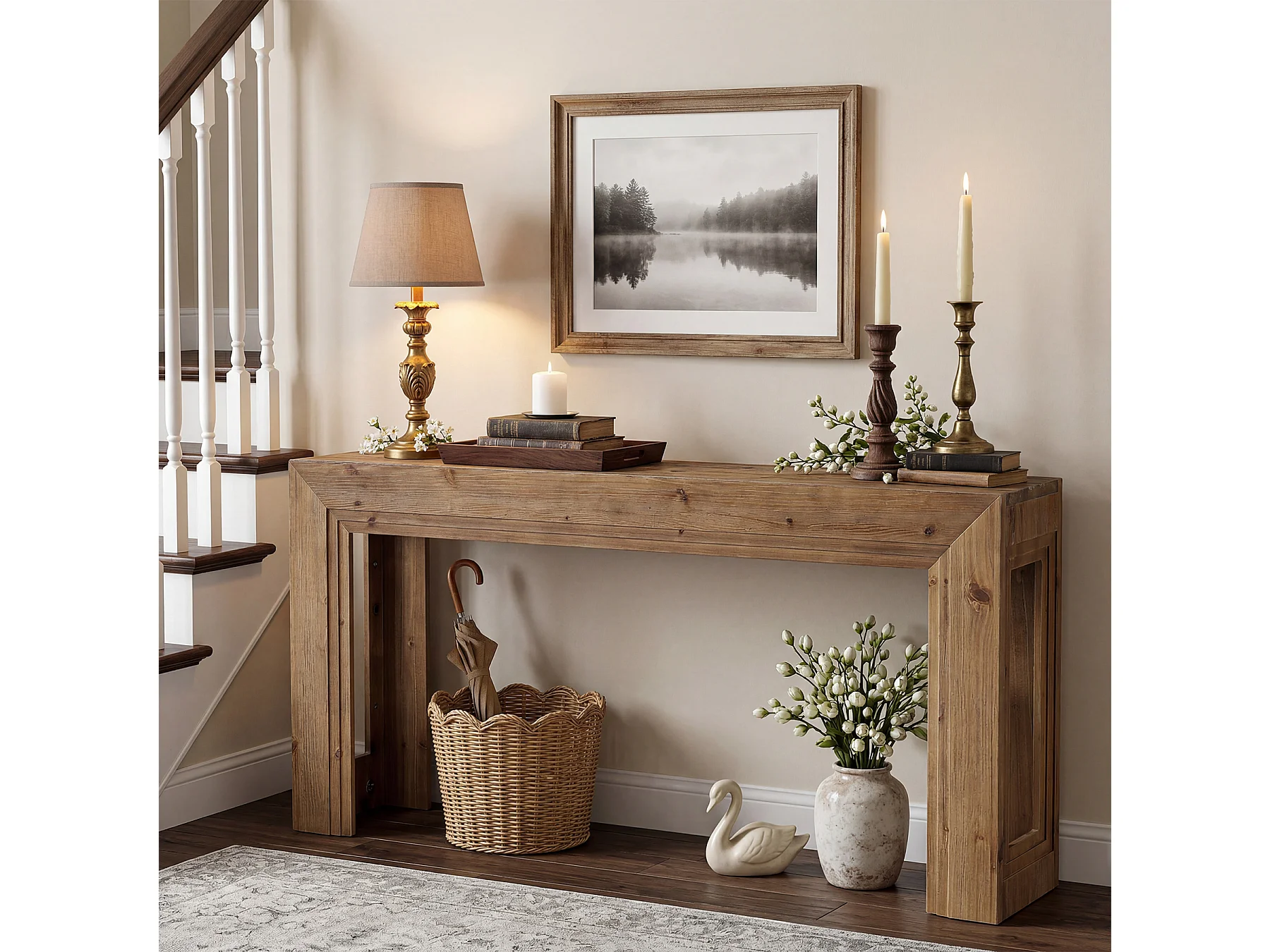 Mesa de Apoio de Madeira Sólida de 160 cm, Mesa de Entrada Estreita para Entrada