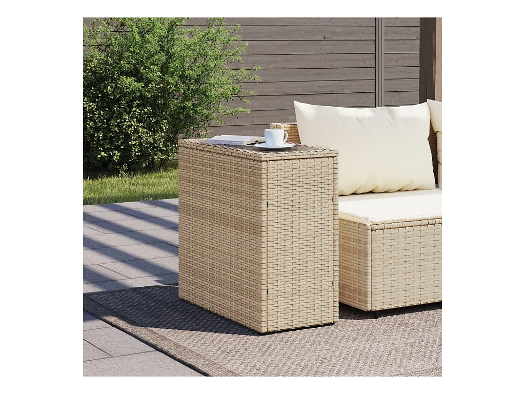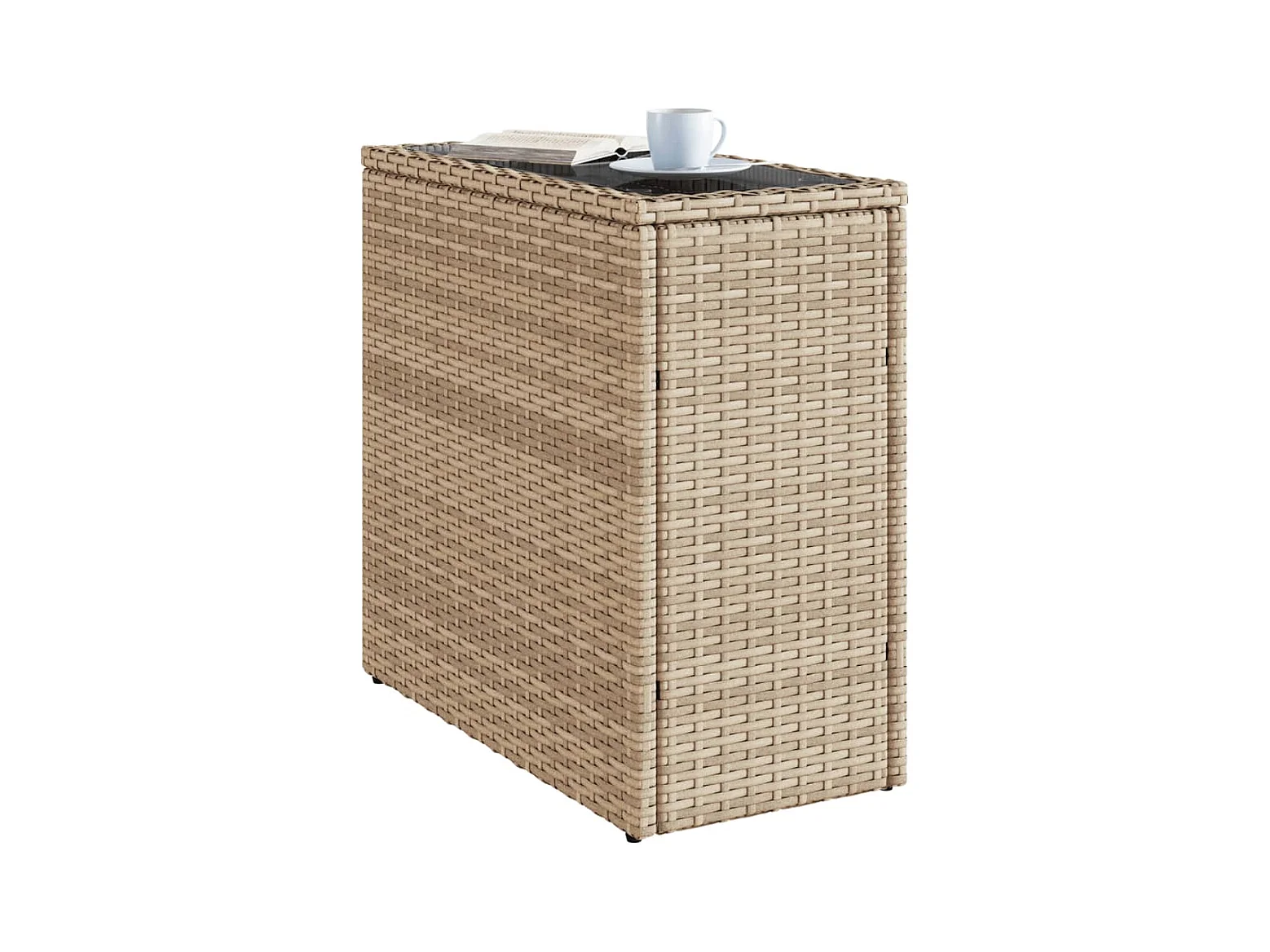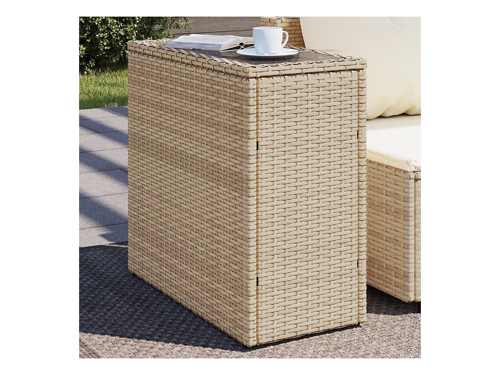 Mesa de apoio jardim c/ tampo vidro 58x27,5x55 cm vime PE bege