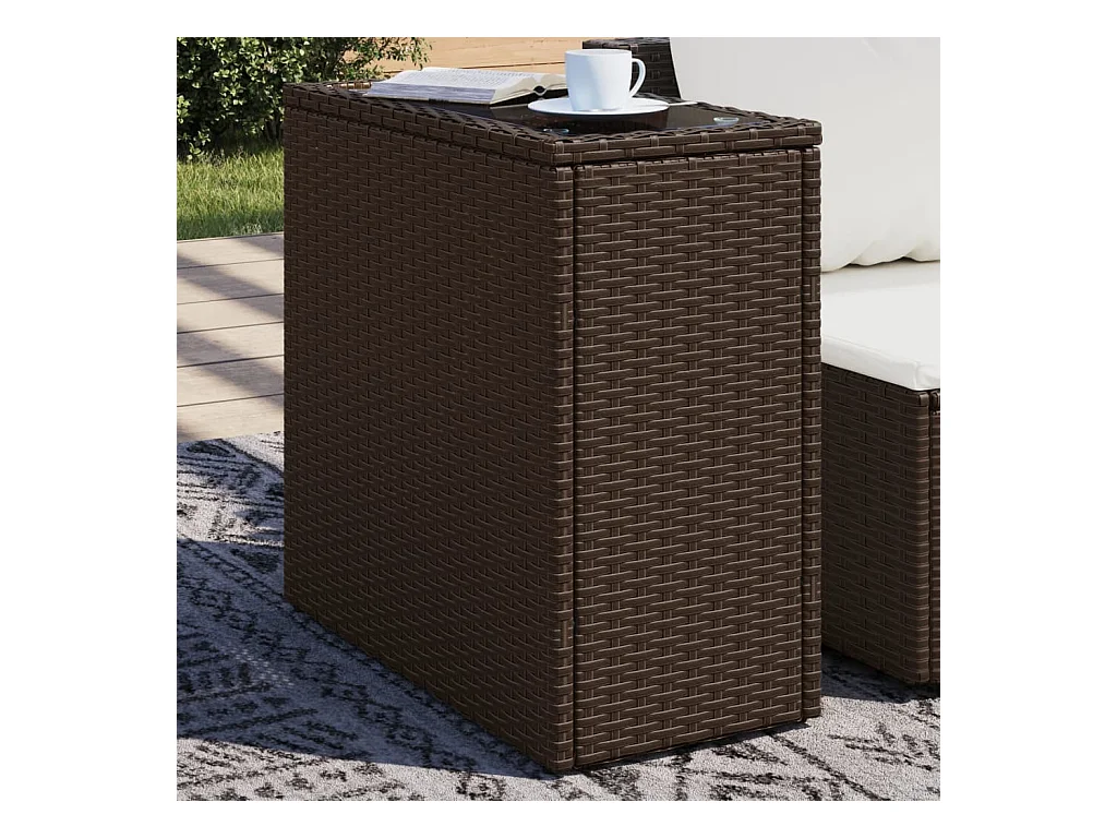 Mesa de apoio com tampo de vidro 35x35x52 cm vime PE castanho