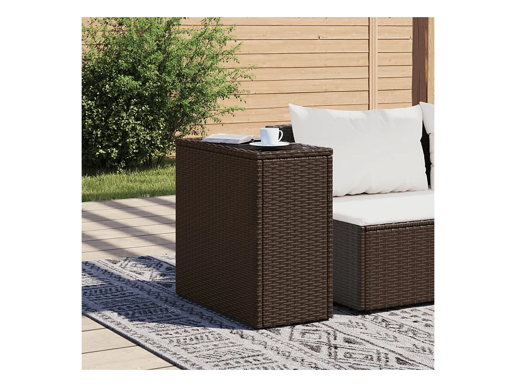 Mesa de apoio jardim tampo vidro 58x27,5x55 cm vime PE castanho
