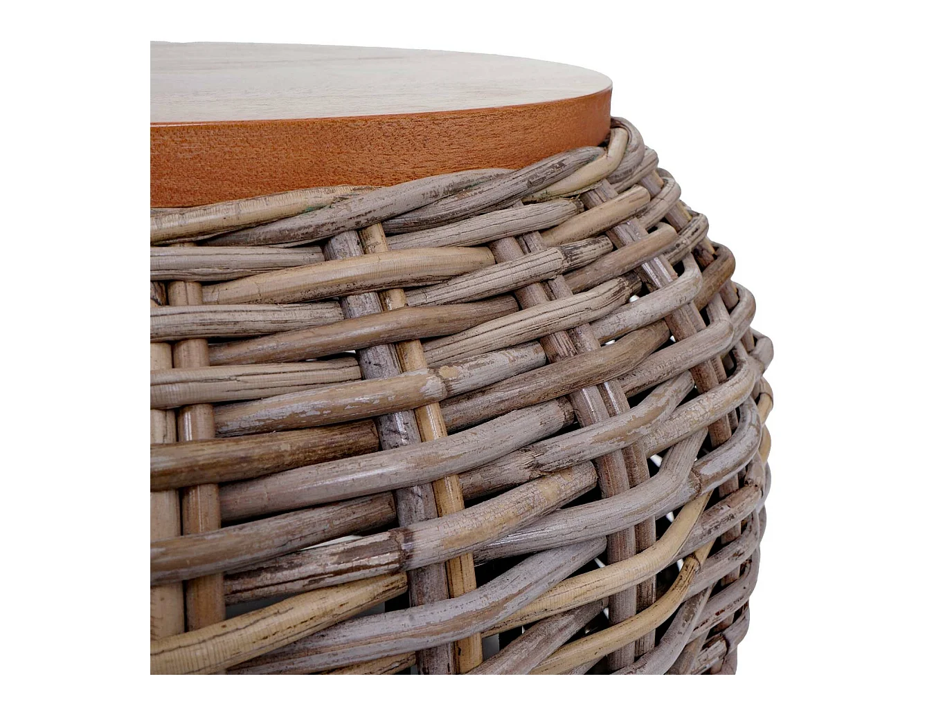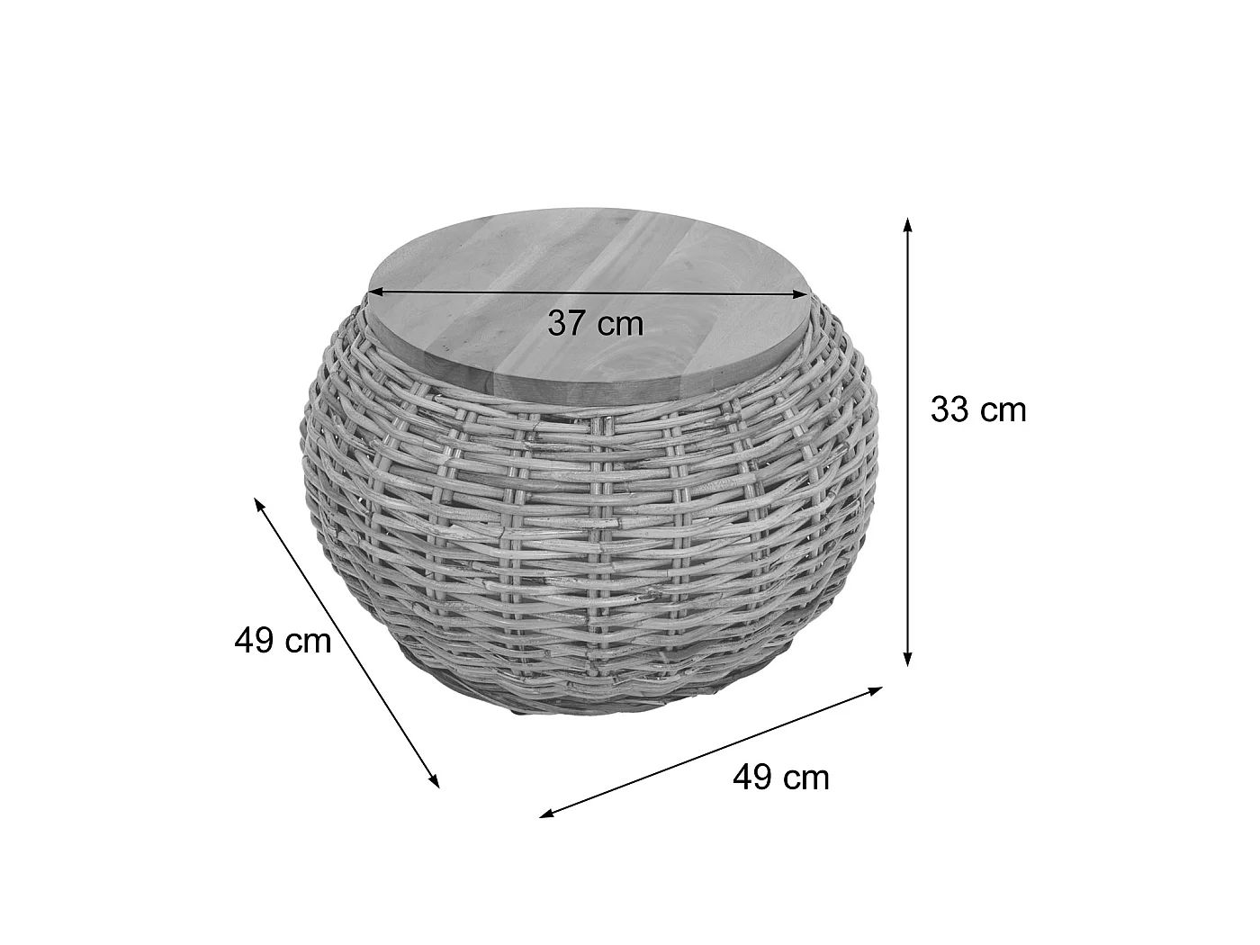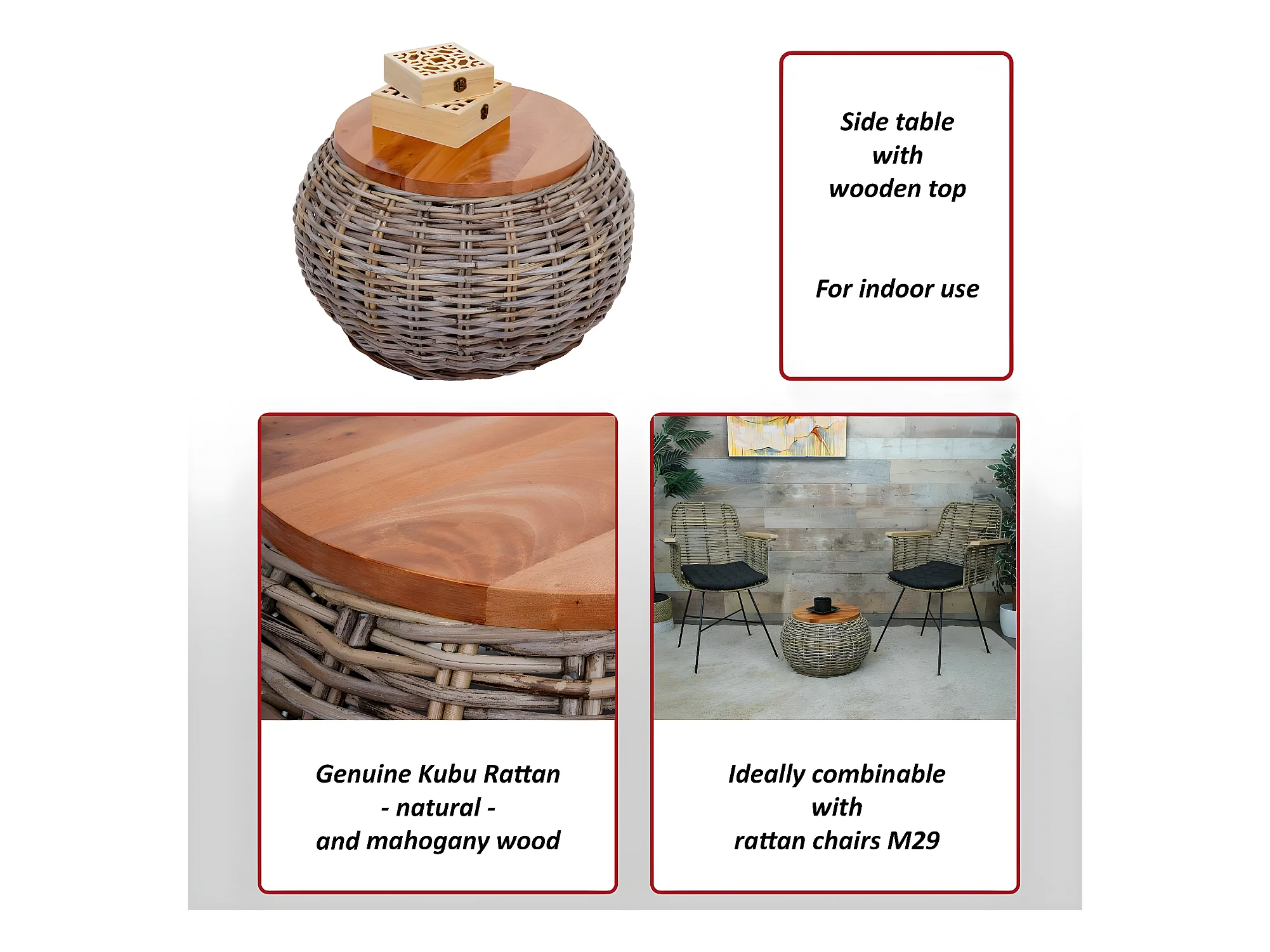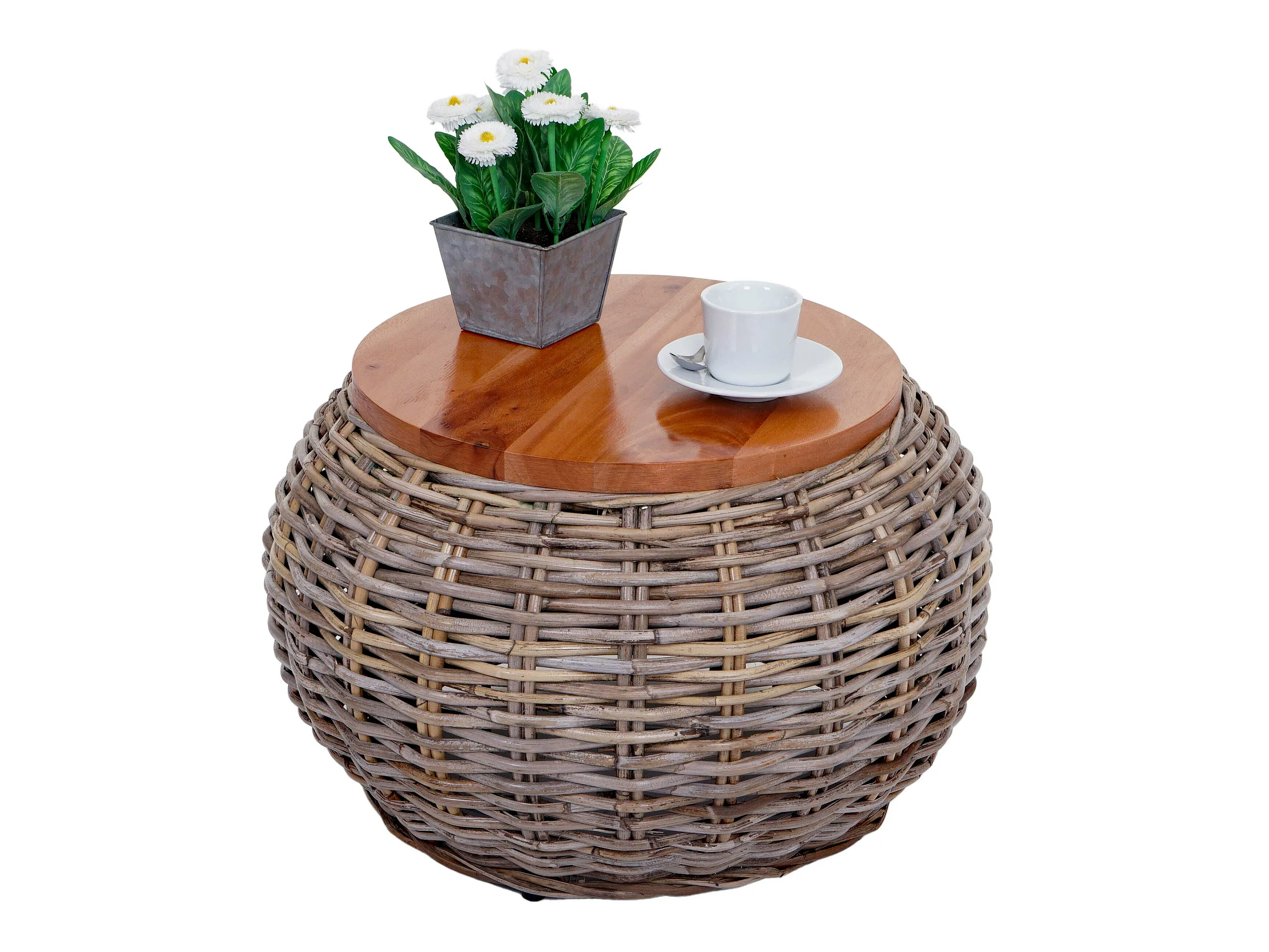 Mesa auxiliar de madeira e capiz branco d40x45h cm