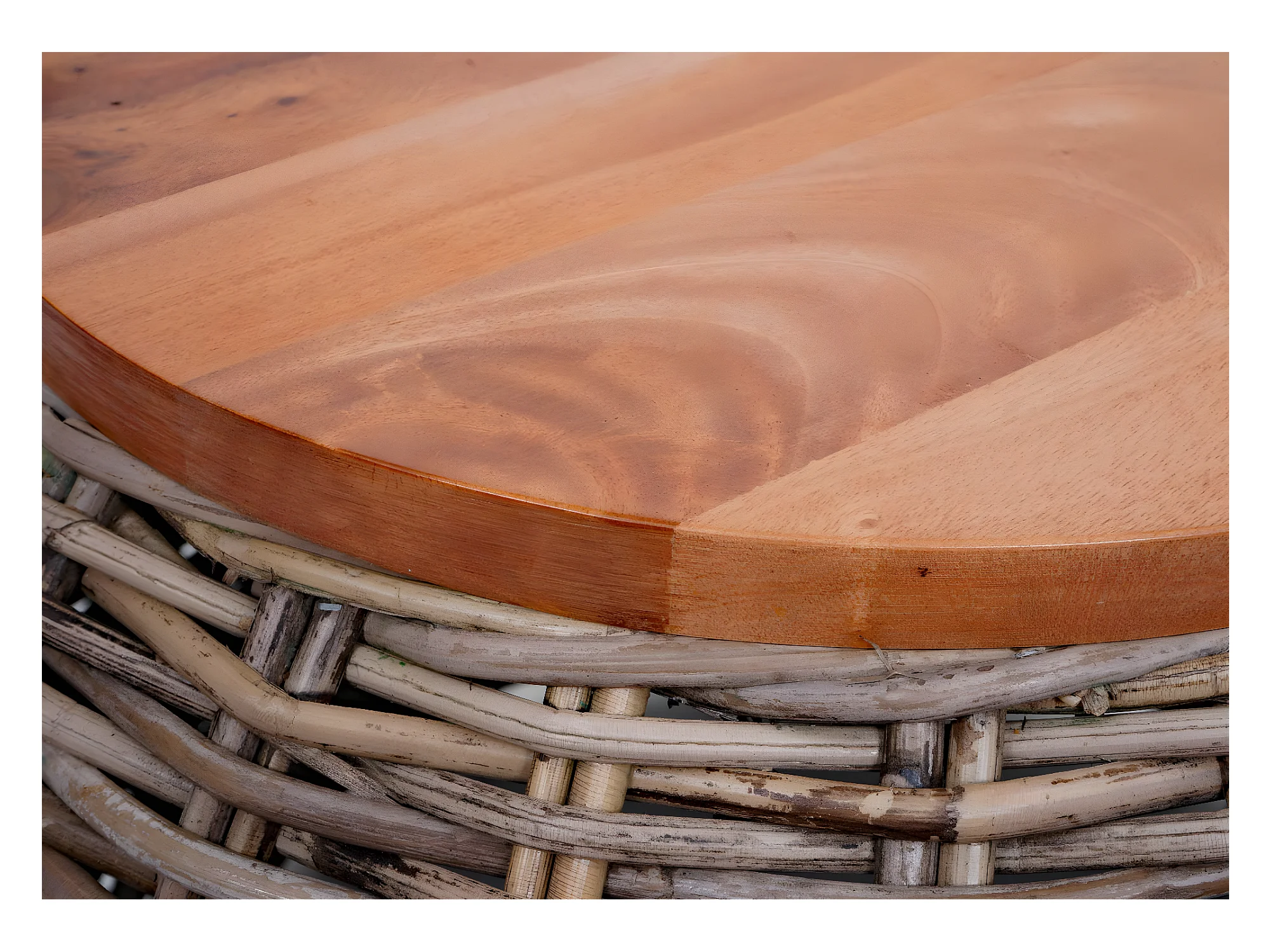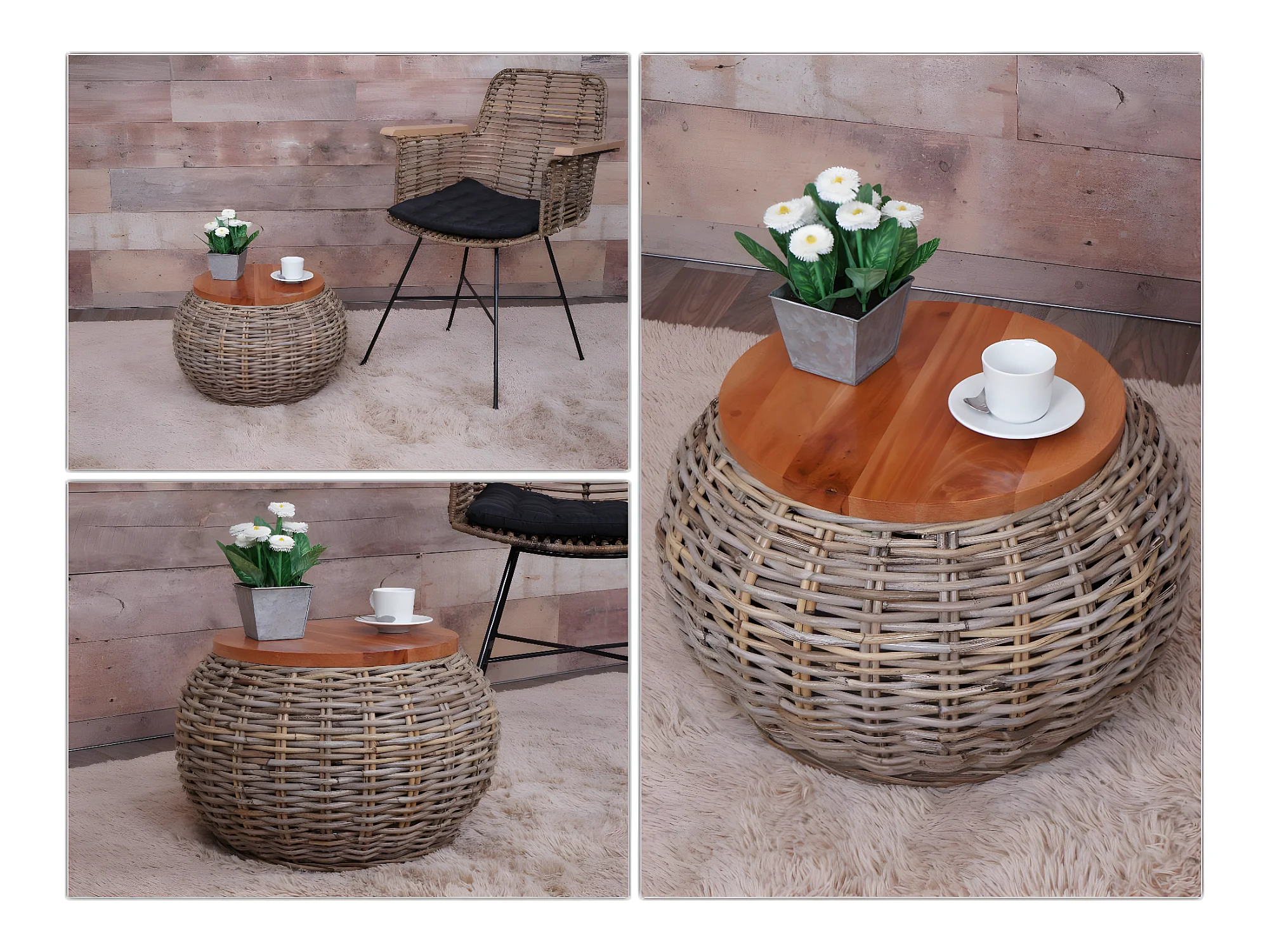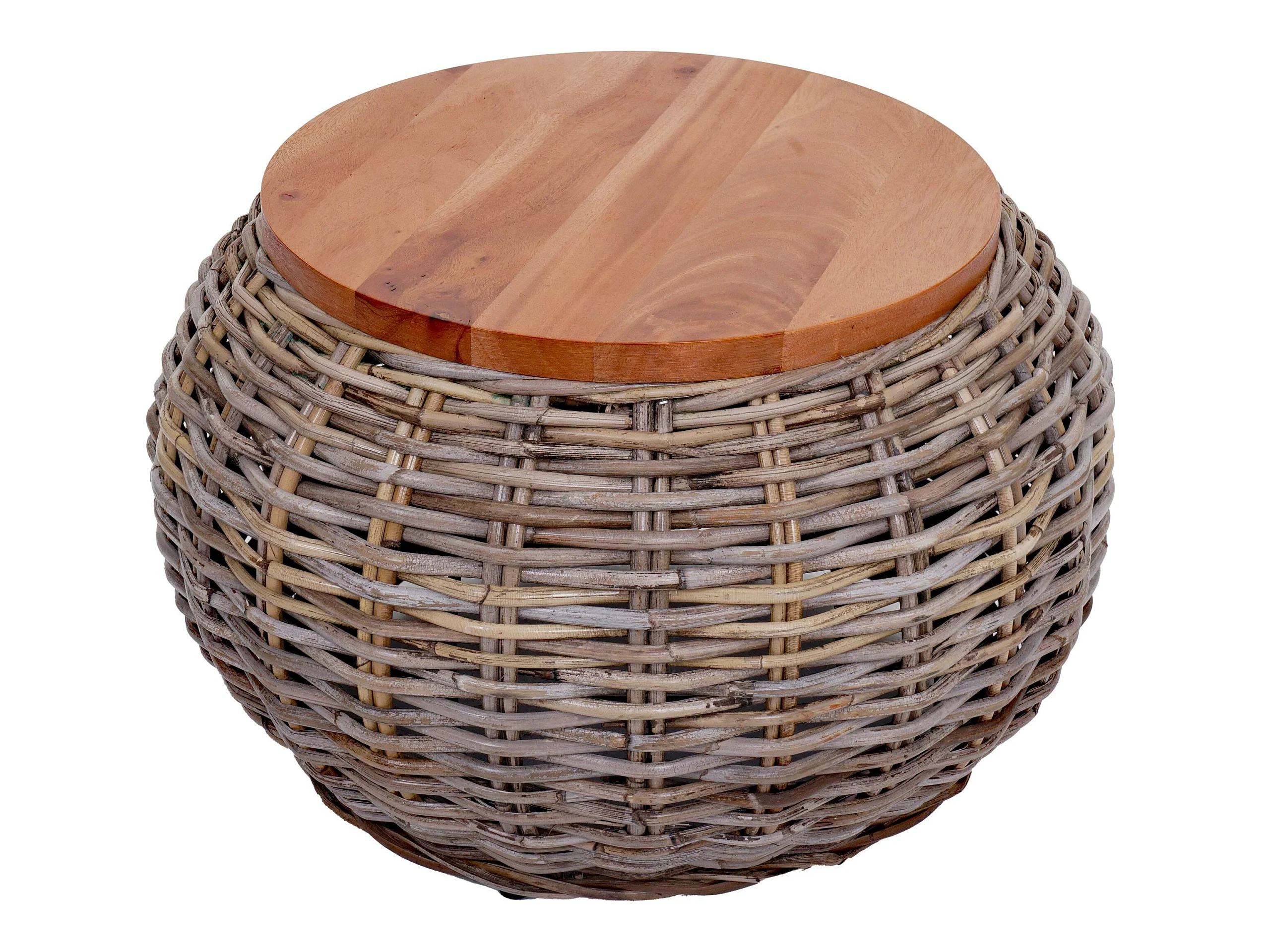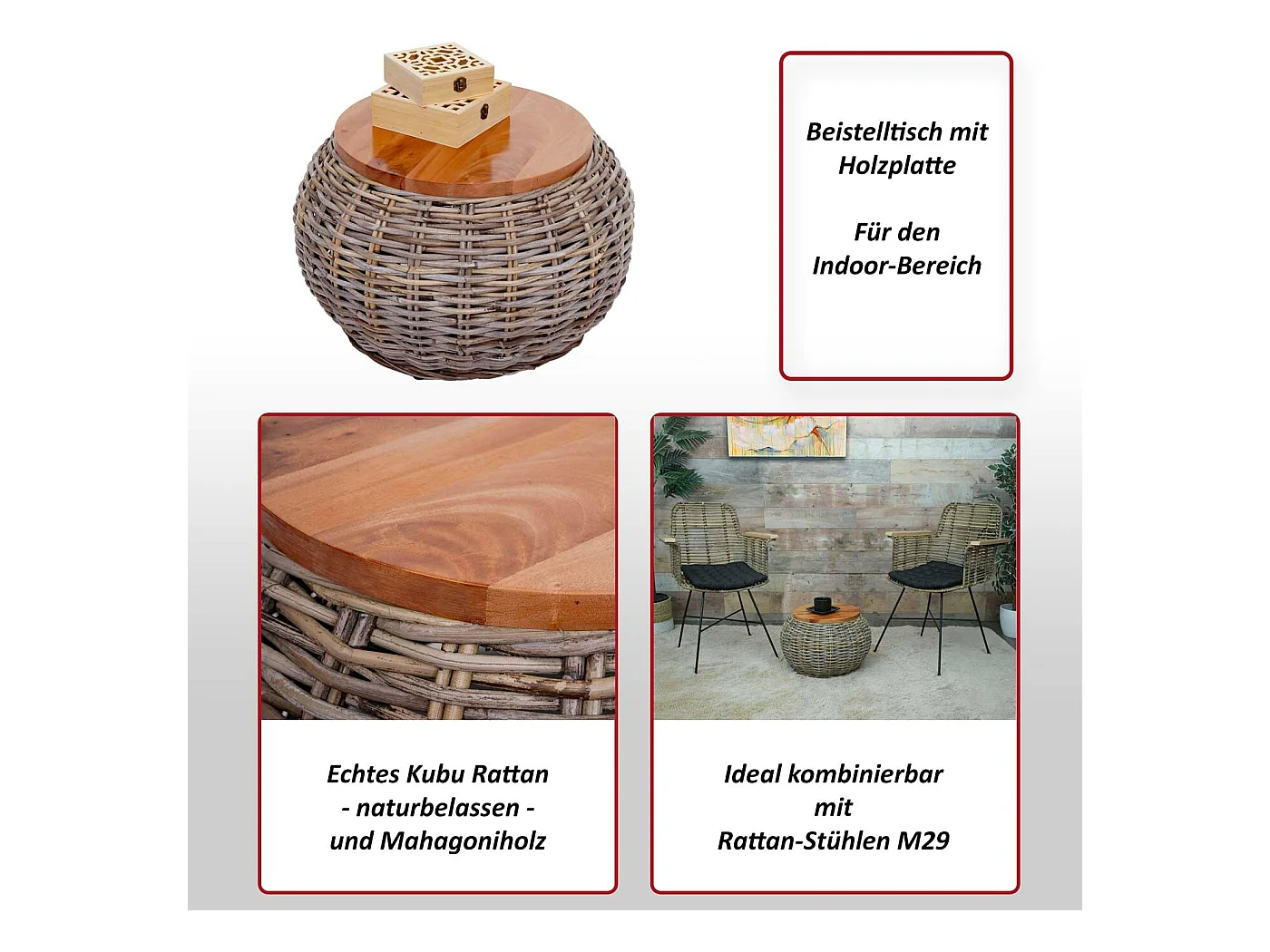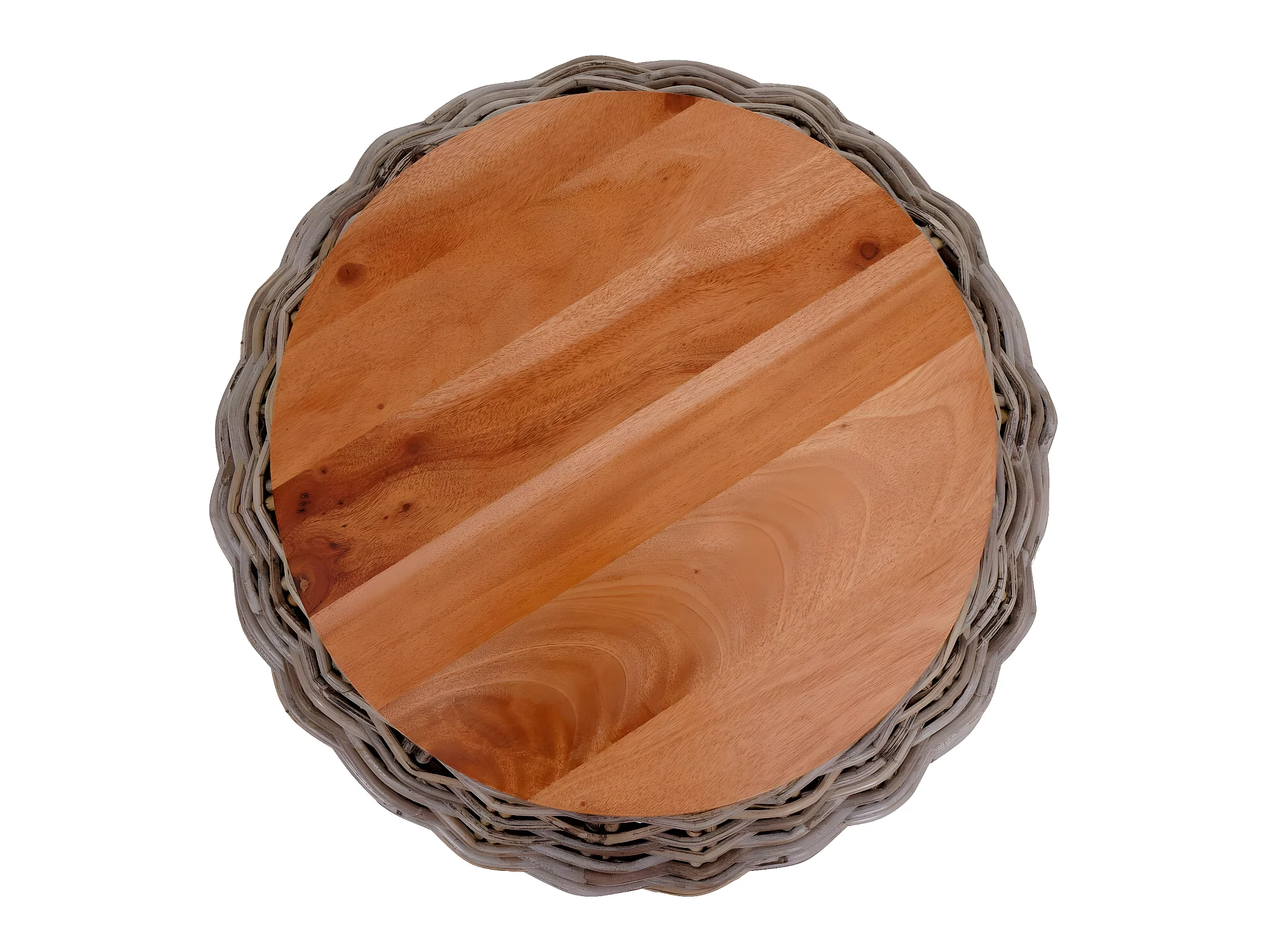Mesa auxiliar de madeira e capiz branco d40x45h cm