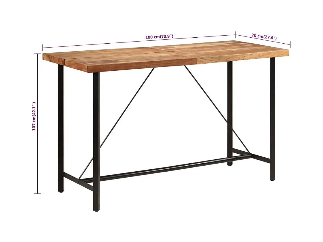 Mesa de bar 180x70x107 cm madeira de acácia maciça e ferro