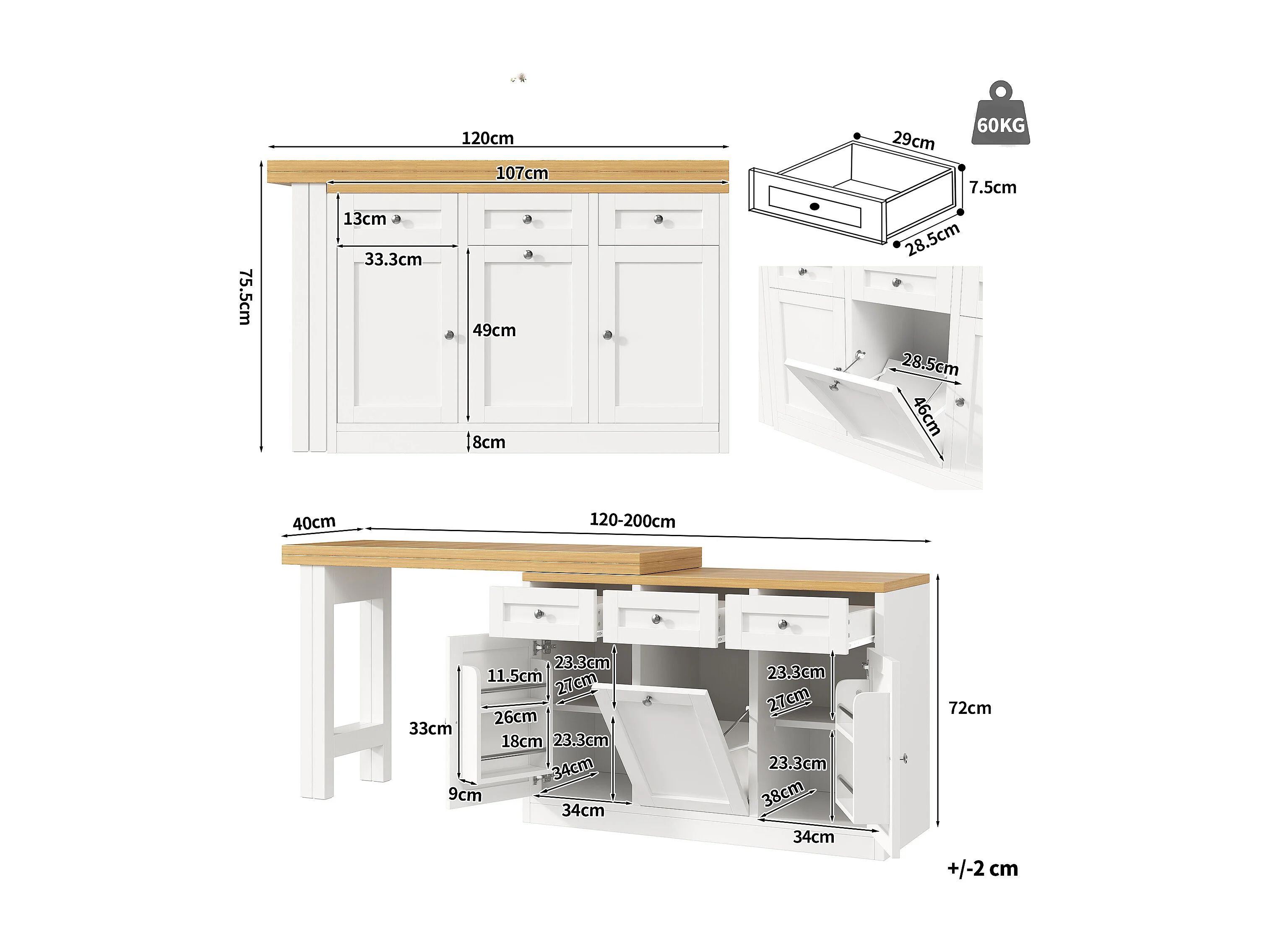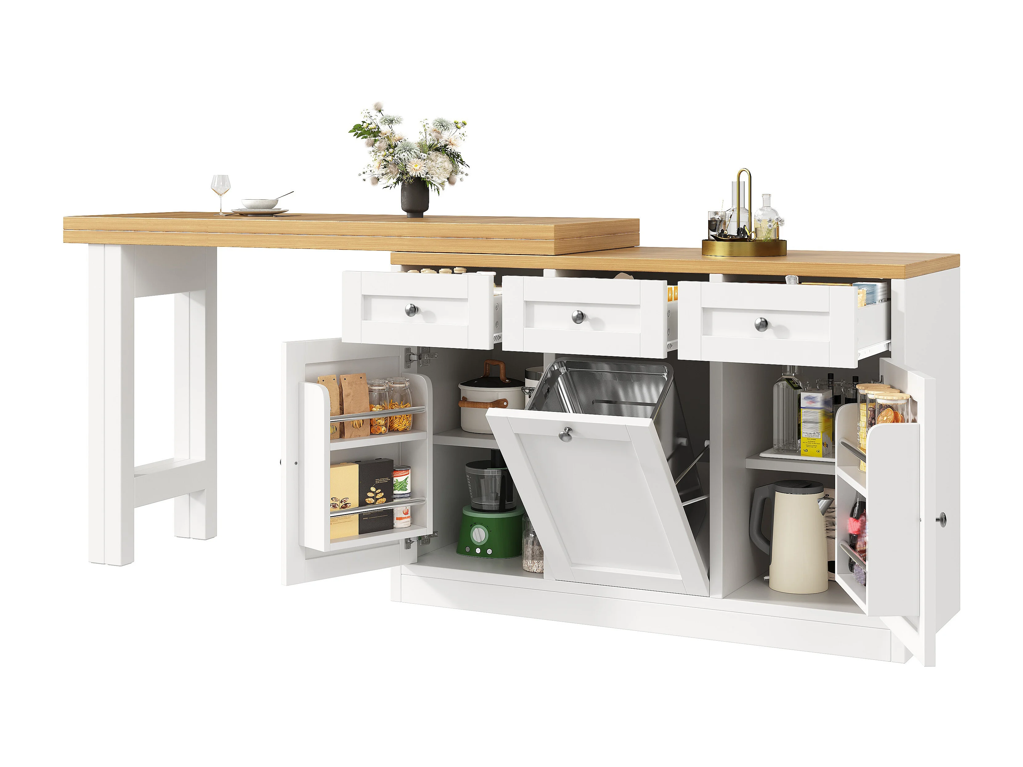 Mesa de bar extensível - 120-180 x 40 x 76 cm - com gaveta + prateleira + portas - MDF - branca