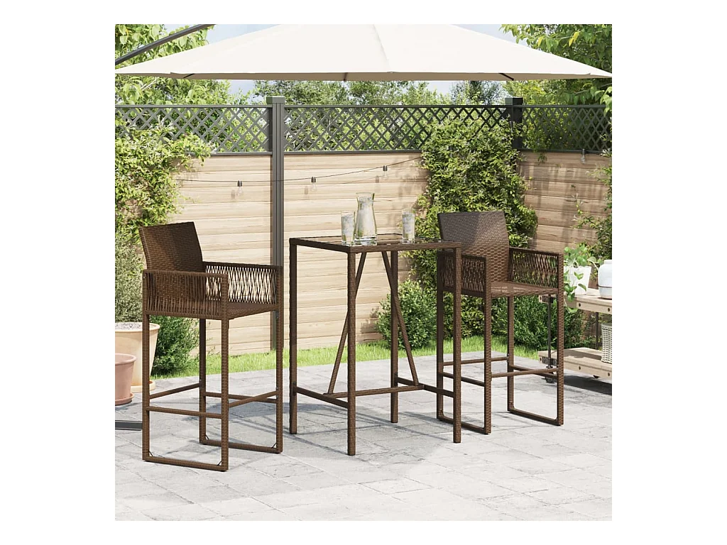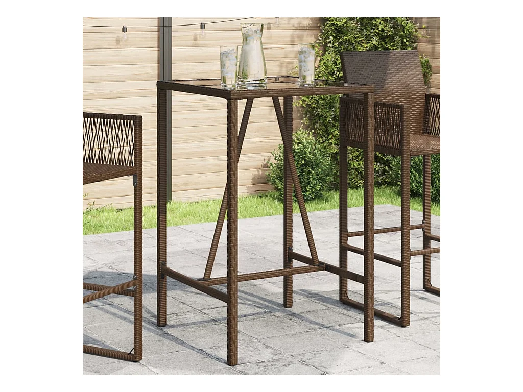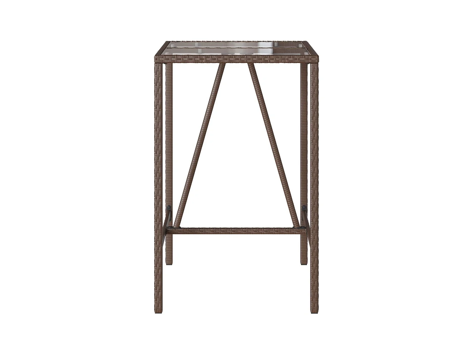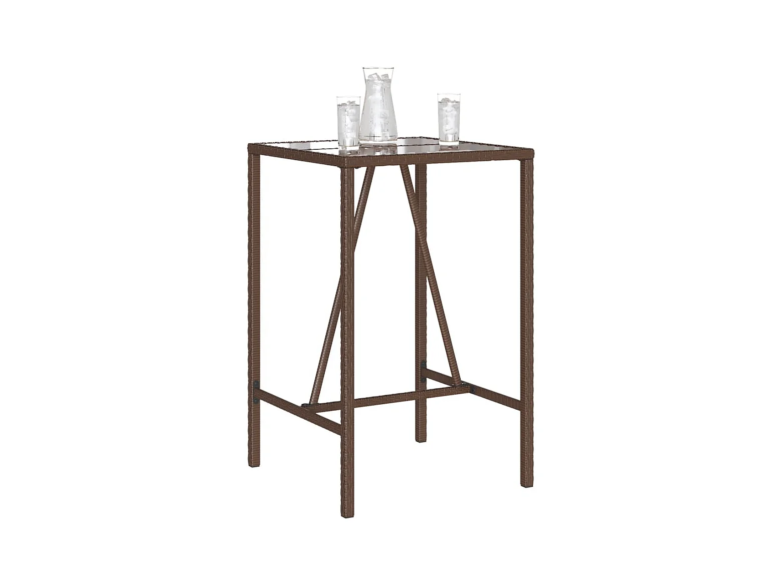 Mesa de bar para jardim 70x70x110 cm vidro e vime PE castanho