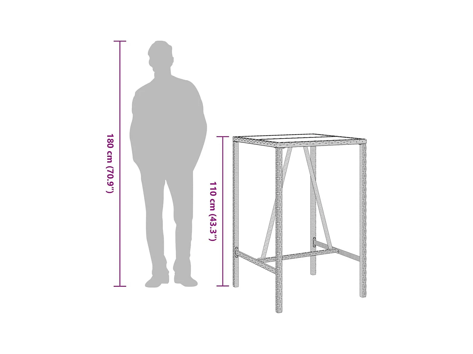 Mesa de bar com tampo de vidro 180x70x110 cm vime PE castanho
