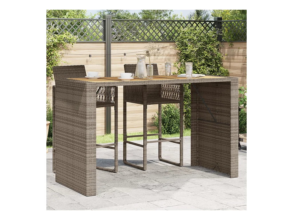 Mesa de bar para jardim com tampo em acácia vime PE cinza