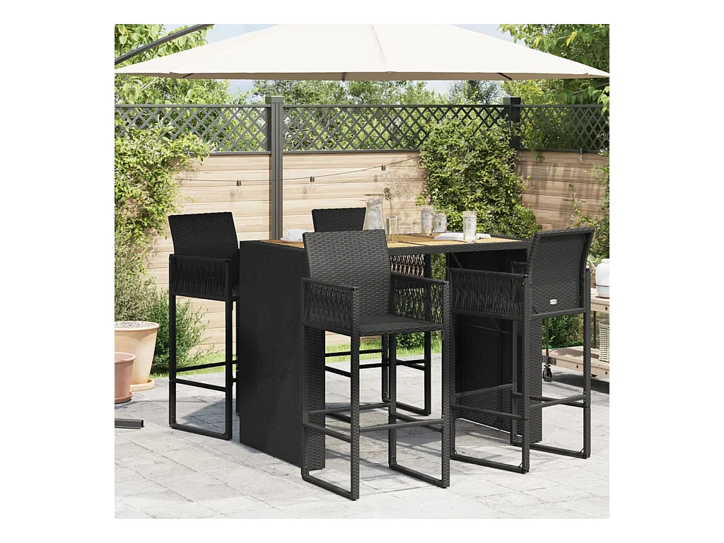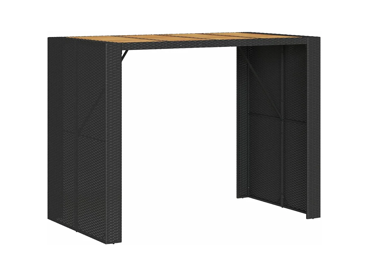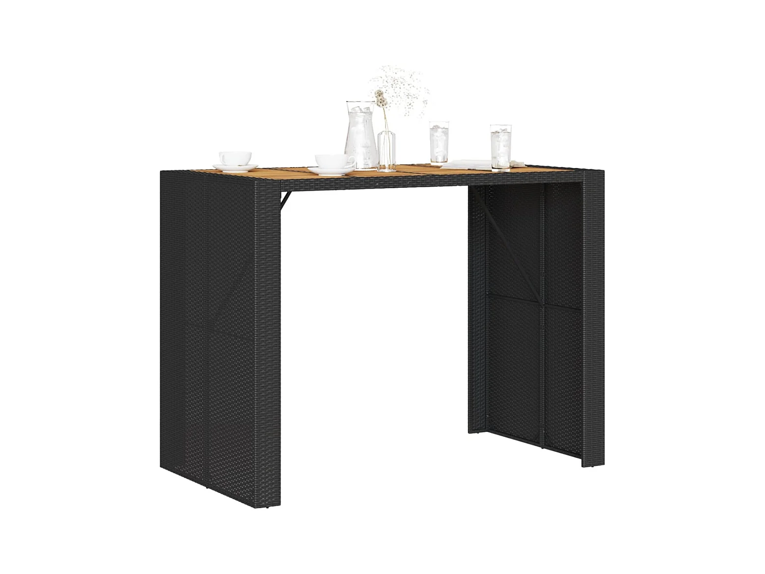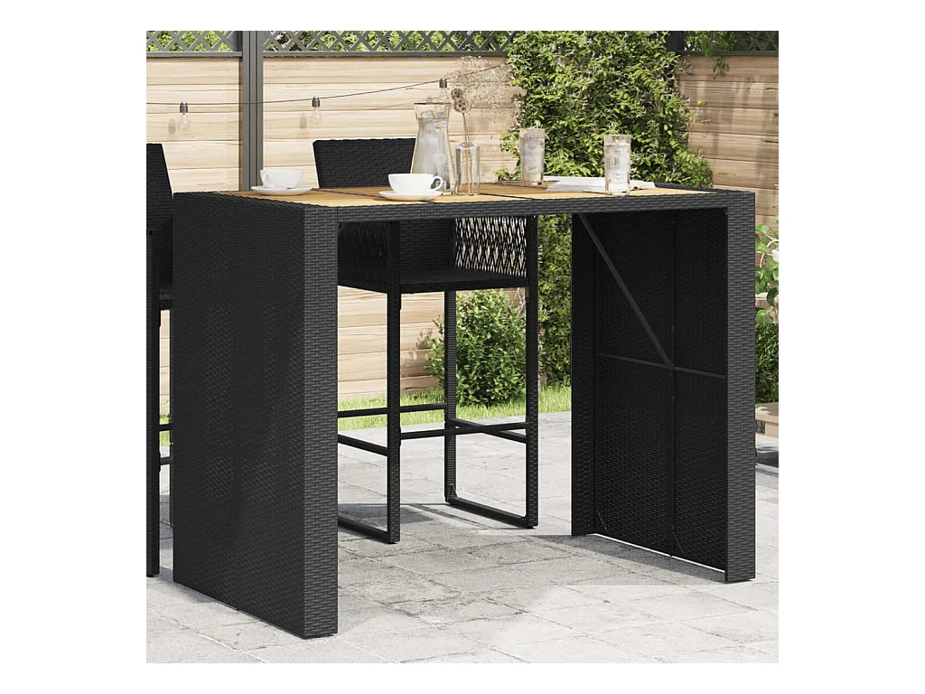 Mesa de bar para jardim com tampo em acácia vime PE preto