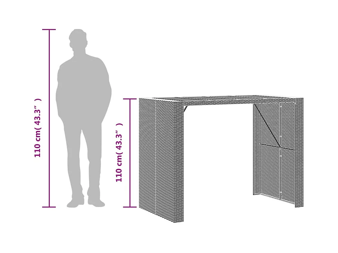 Mesa de bar com tampo de vidro 180x70x110 cm vime PE preto