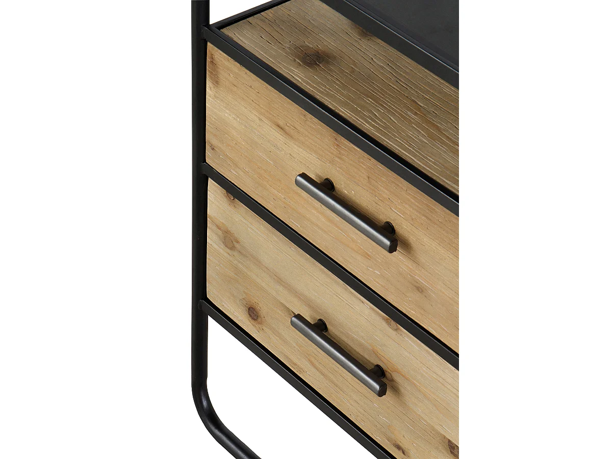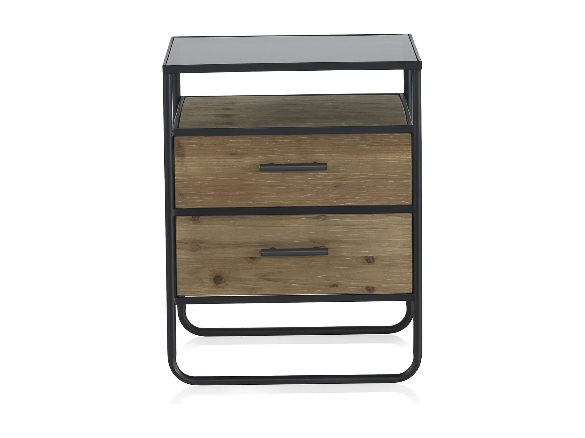 Mesa de cabeceira 2 gavetas em madeira de abeto e ferro