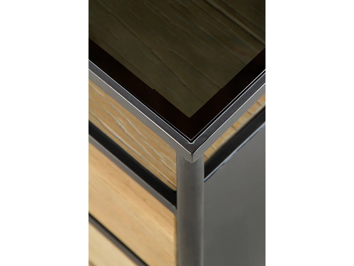 Mesa de cabeceira industrial INKA em carvalho e preto com gaveta e prateleira