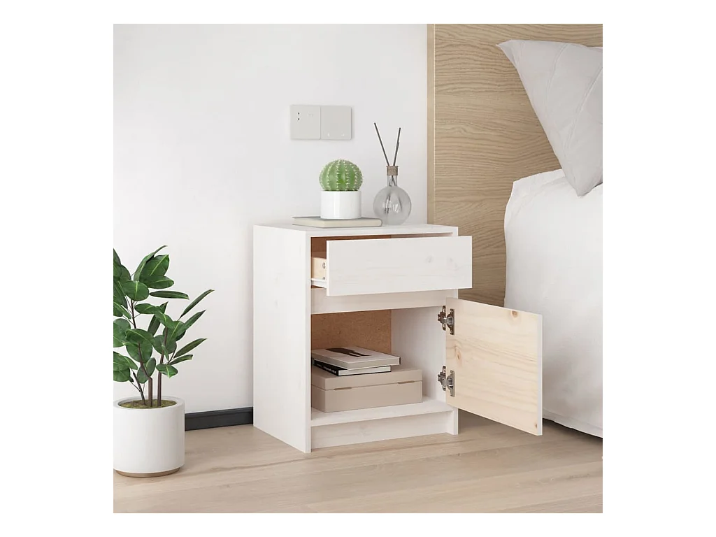 Mesa de cabeceira 40x31x50 cm madeira de pinho maciça branco