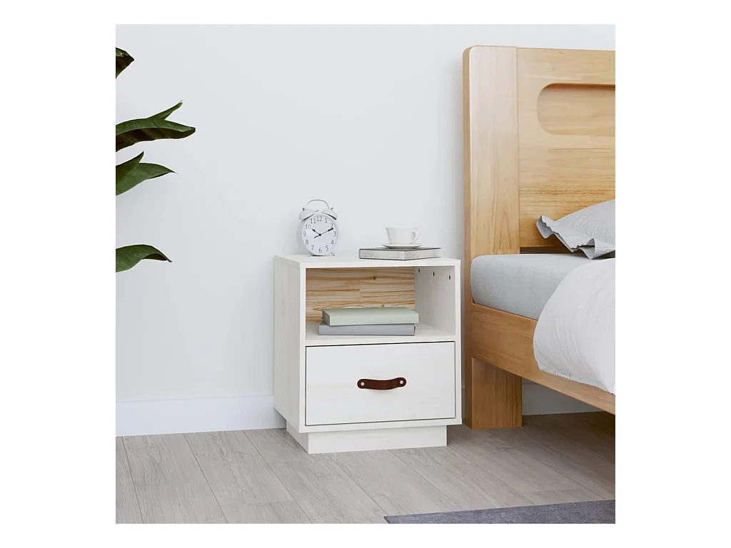 Mesa de cabeceira 40x34x45 cm madeira de pinho maciça branco PT64403