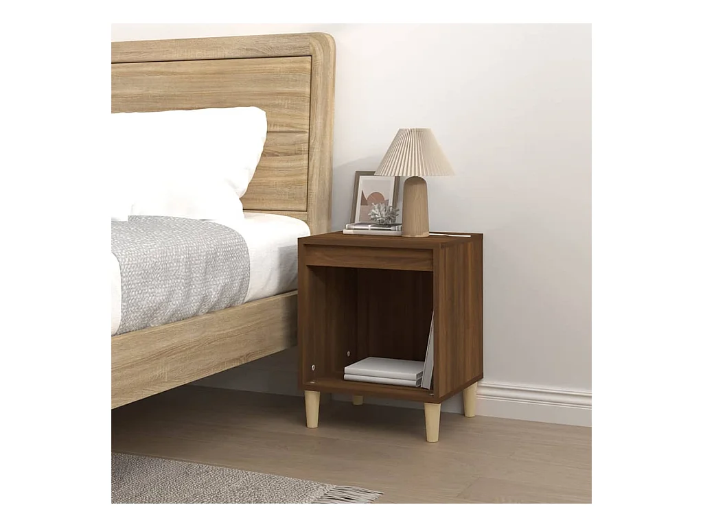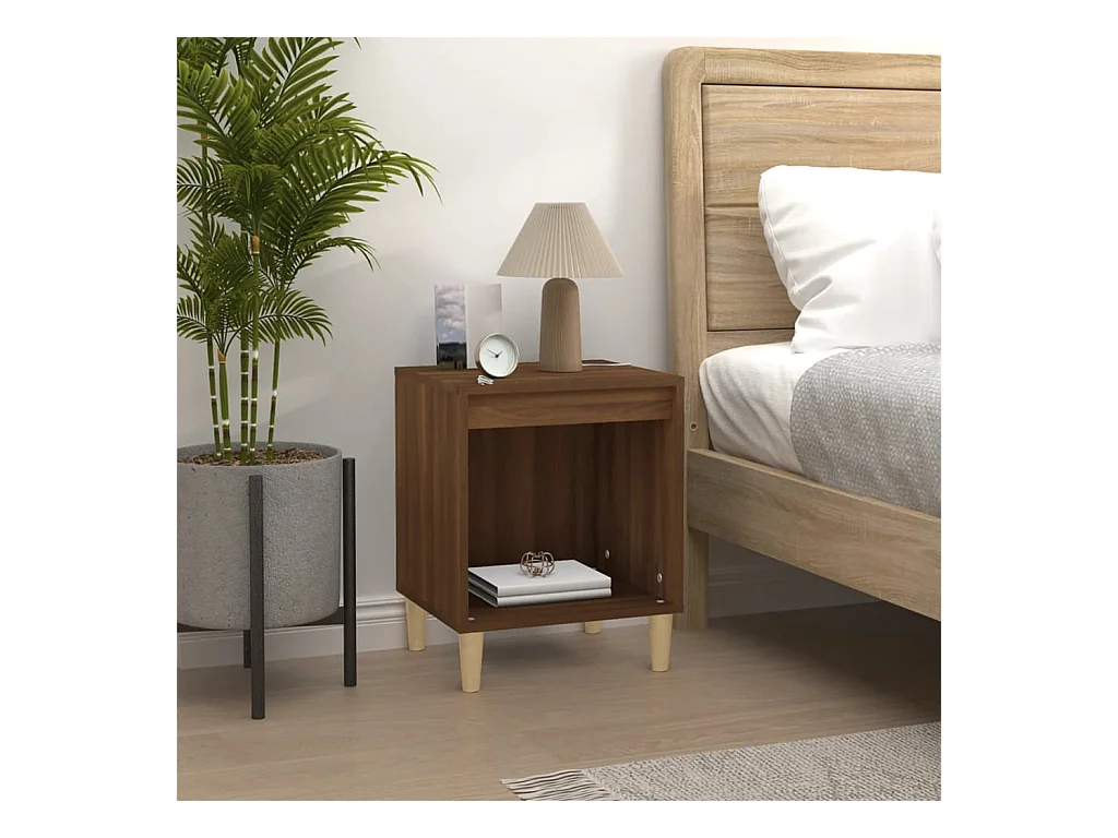 Mesa cabeceira + pernas madeira maciça 40x35x50cm carv. fumado PT60864