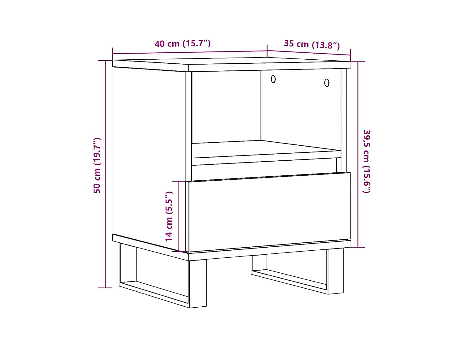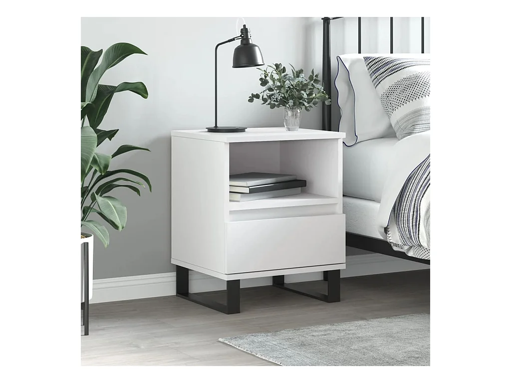 Mesa de cabeceira 40x35x50cm derivados madeira branco brilhante