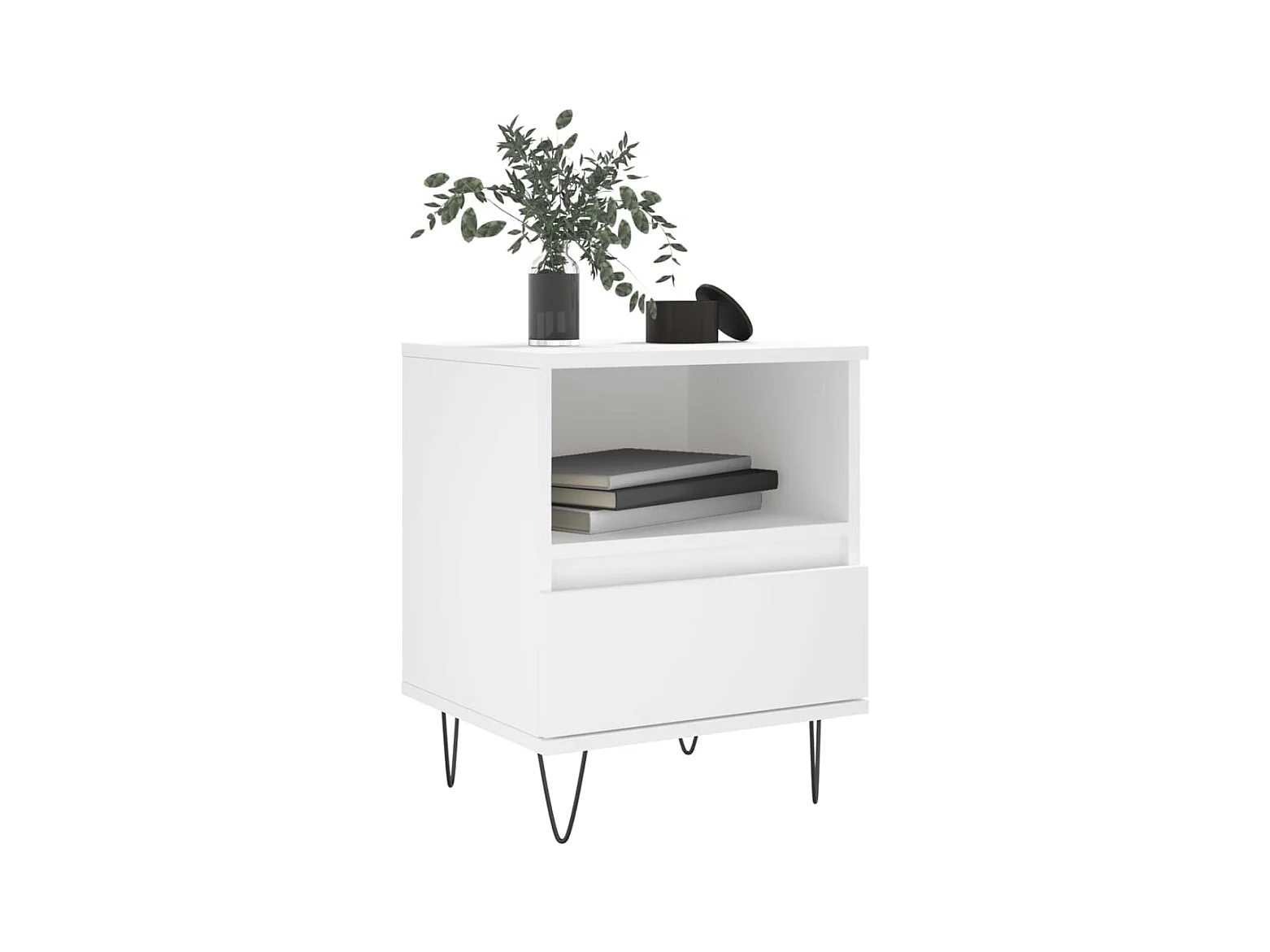 Mesa de cabeceira 40x35x50cm derivados madeira branco brilhante