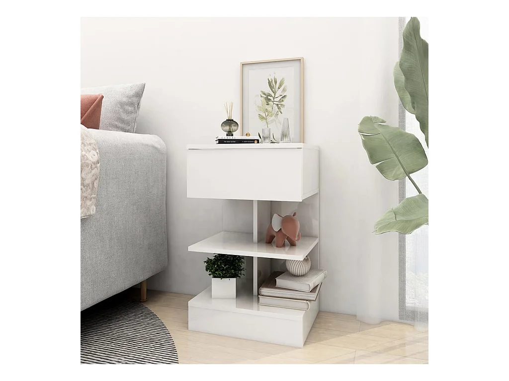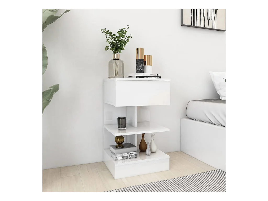 Mesa de cabeceira 40x35x65 cm contraplacado branco brilhante PT82759