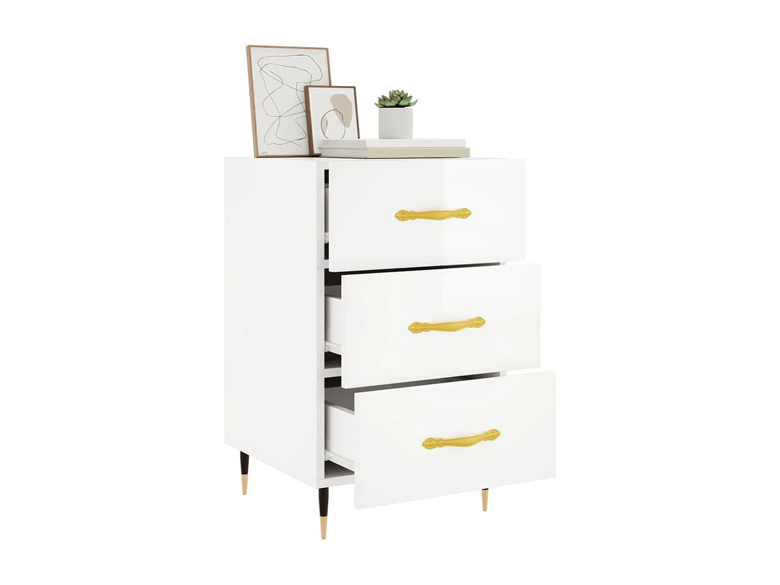 Mesa de cabeceira 40x40x66cm derivados madeira branco brilhante