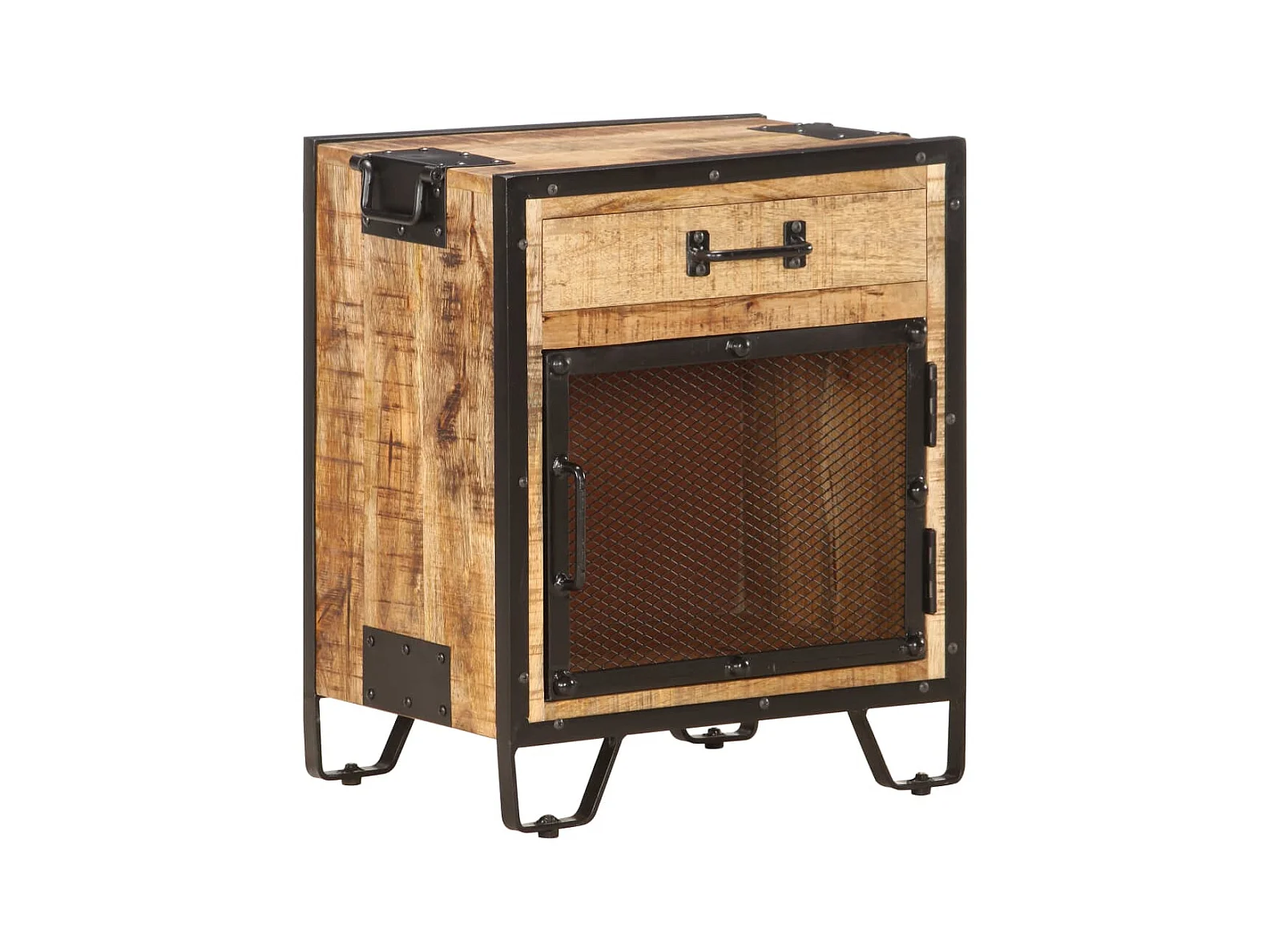 Mesa de cabeceira 40x30x50 cm madeira de mangueira maciça/ferro PT128999