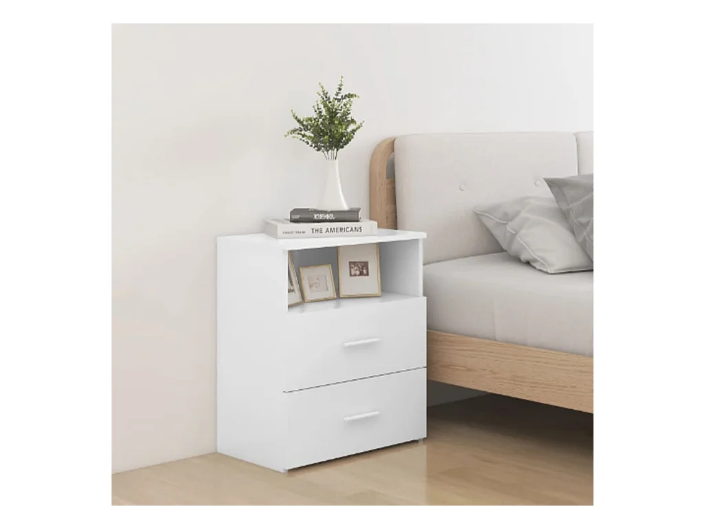 Mesa de cabeceira derivados de madeira branco brilhante PT30107